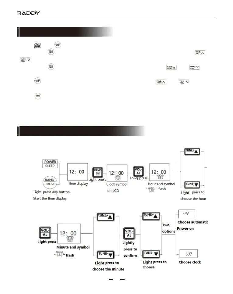 Long press “ ” for 2 seconds, the hour “**” flashes. Press or long press “ ” or