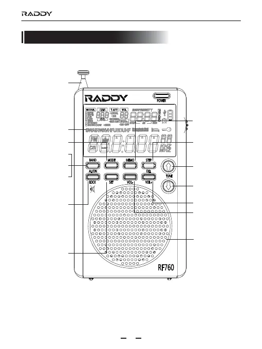 Raddy RF760 - Beschreibung der Bedienelemente