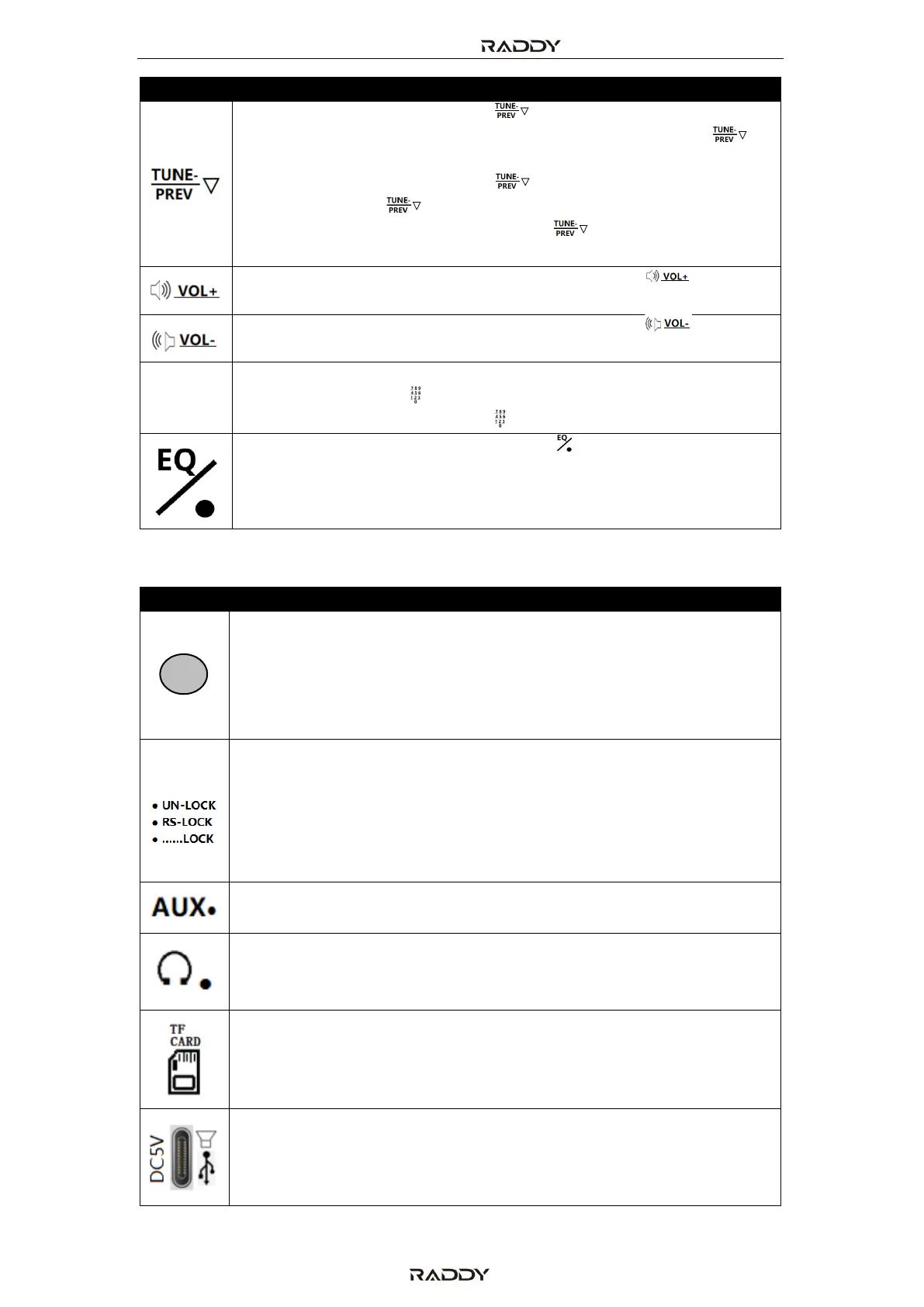 • In TF card mode, short press [ ] and [EN] to select a track.