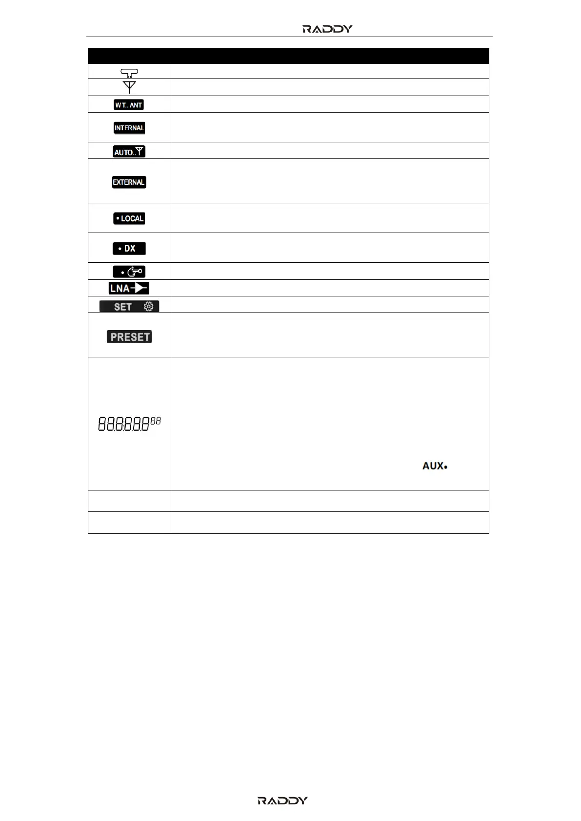 of the radio, “AUX” is displayed