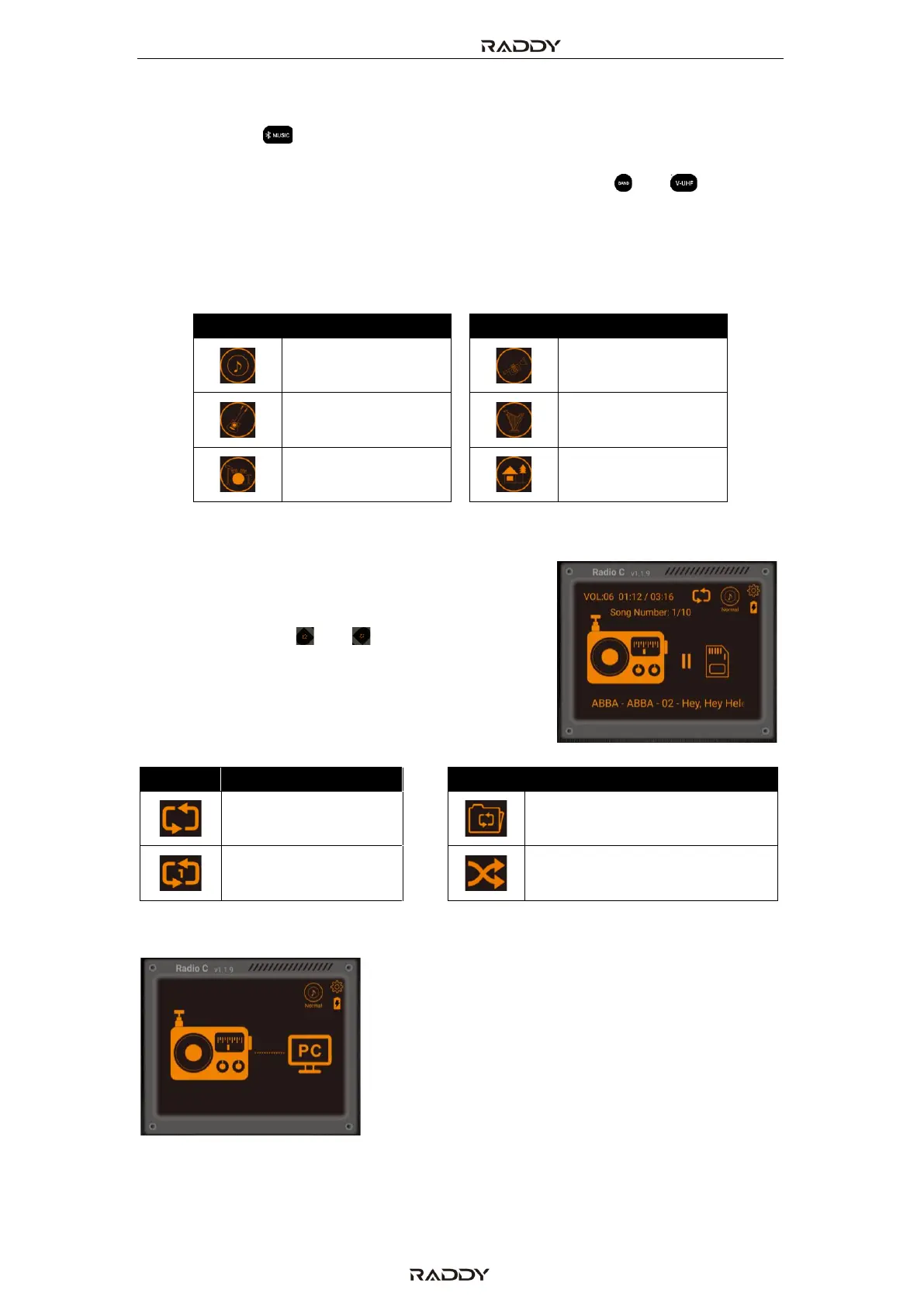 Short press the symbol to change the playback