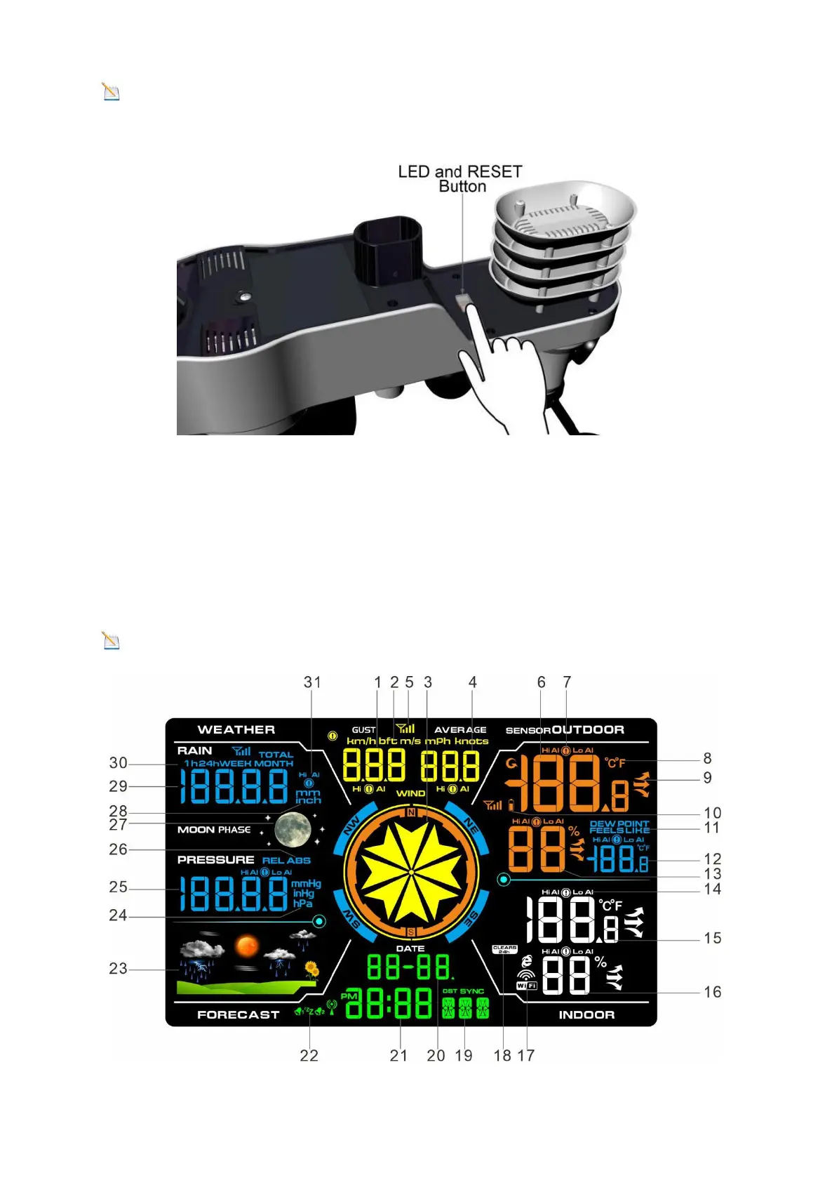 Tendency, Moon phases, and Time, Wind speed, Wind gust, Wind direction, Rain.