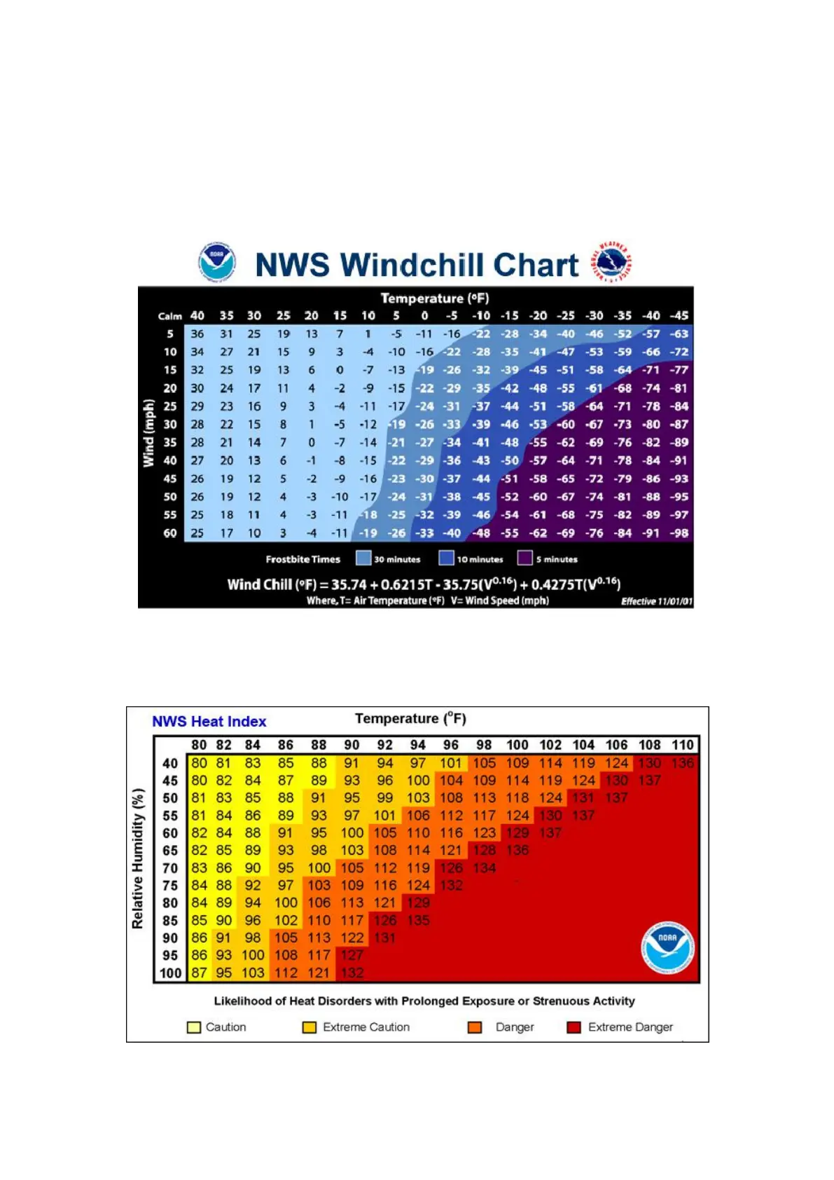 nachfolgenden Windchill-Tabelle des „National Weather Service“ dargestellt: