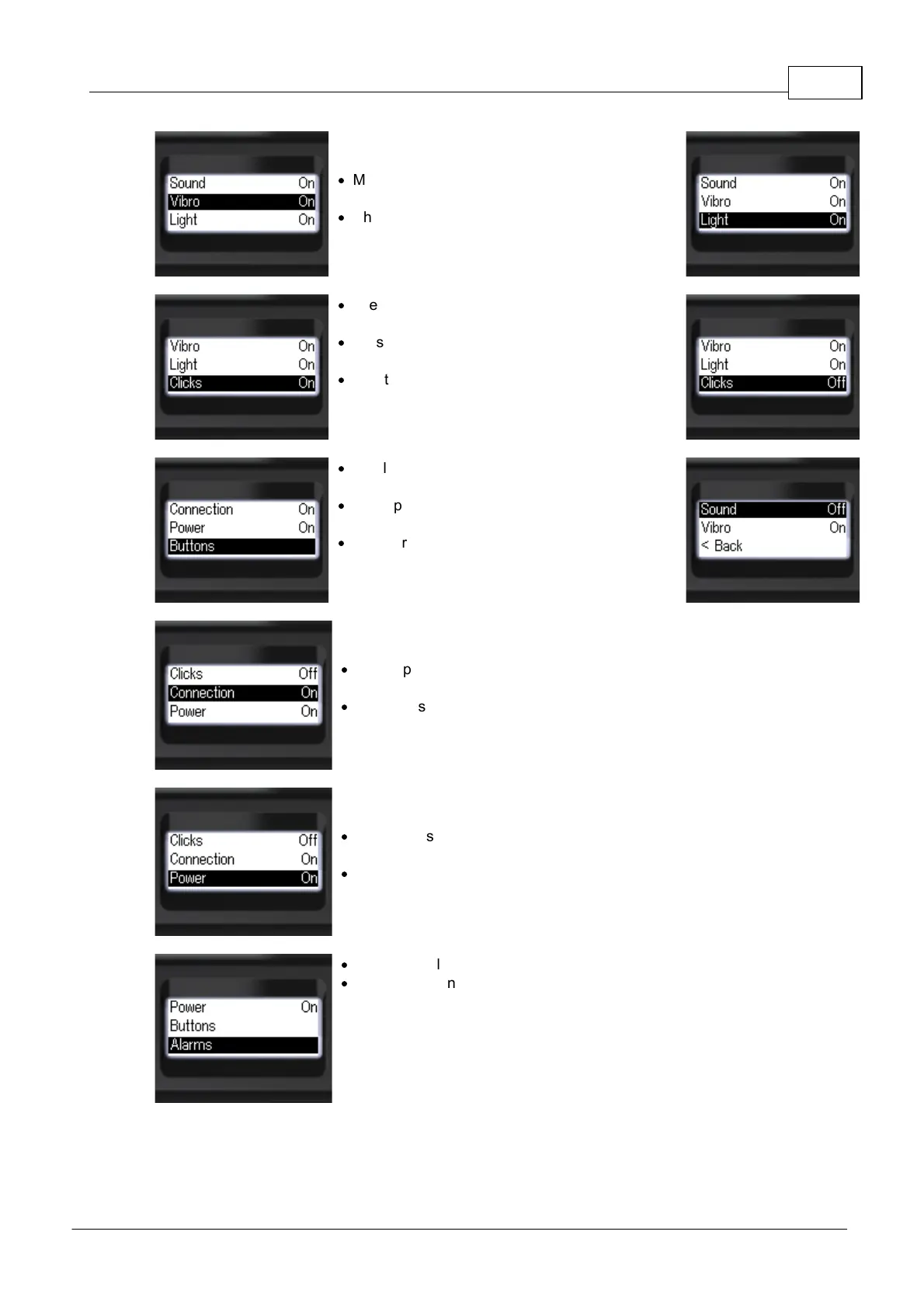 Move the focus to [Vibro] or [Light] by short