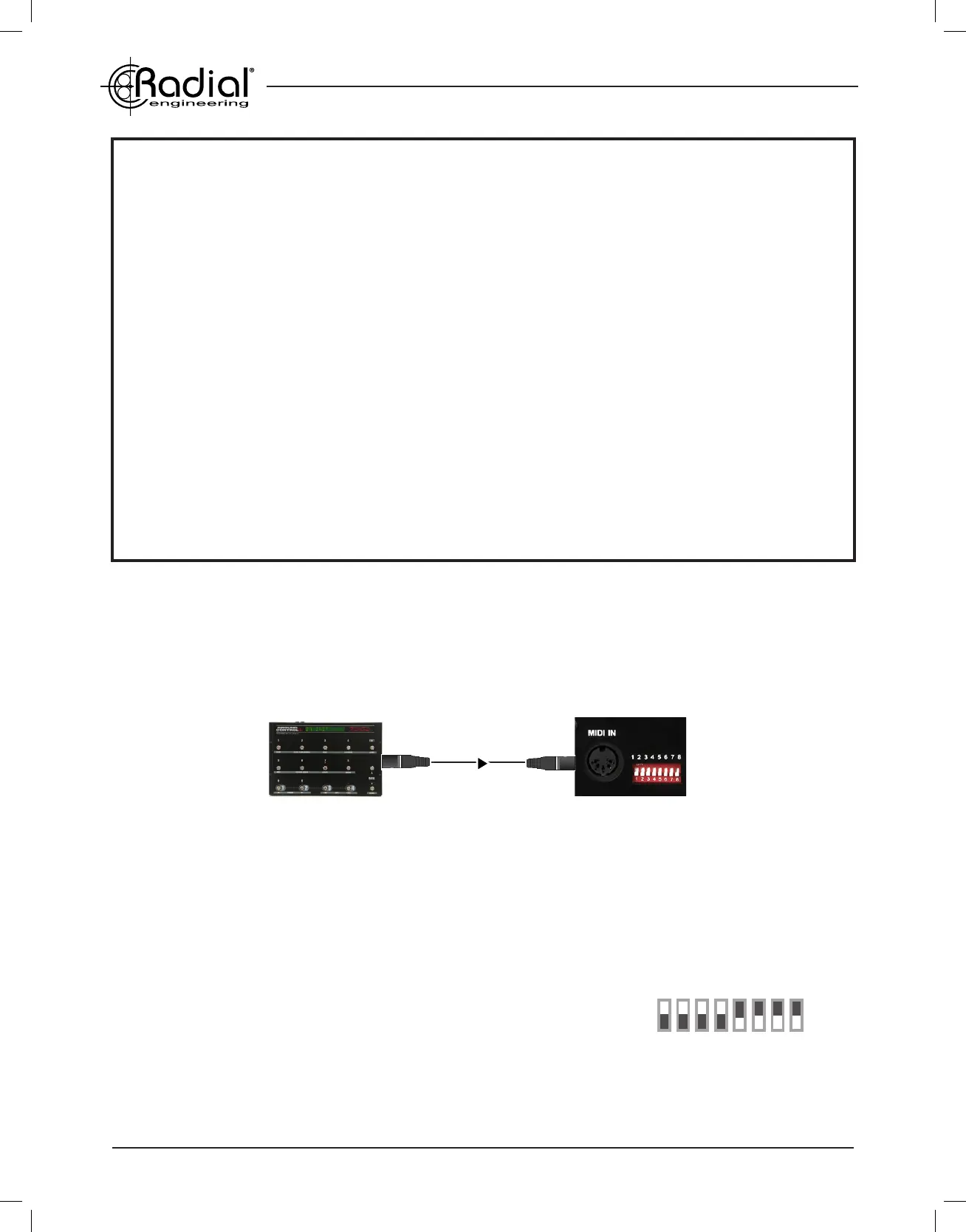 The MIDI input and dip switches