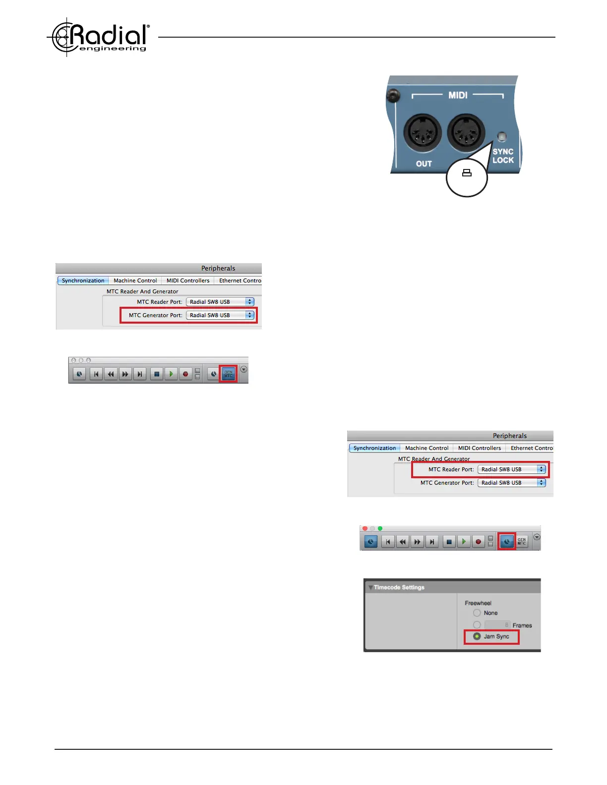 Engage SYNC LOCK to pass MIDI