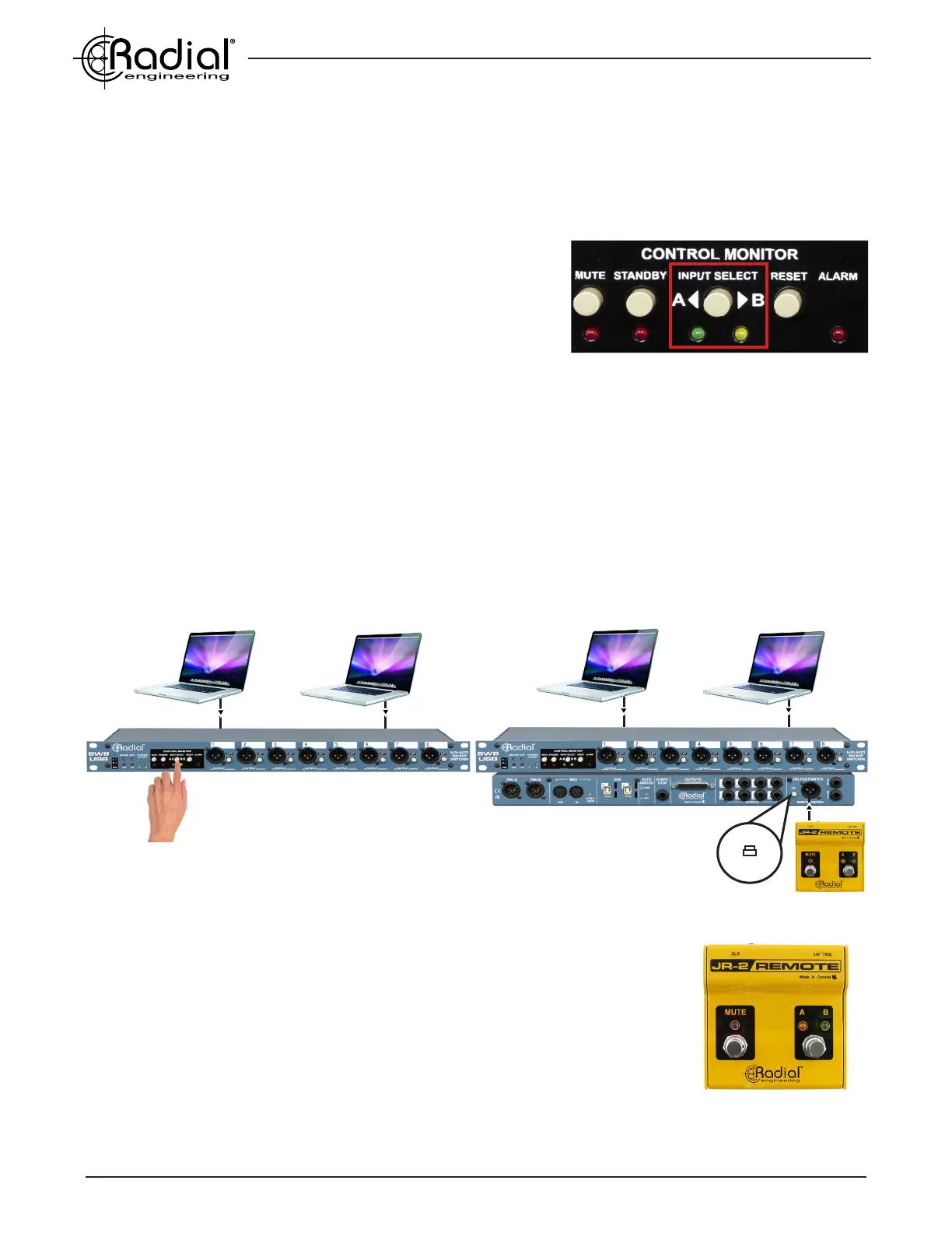 inputs. The LED indicators on the JR-2 will sync with the front panel LEDs on the