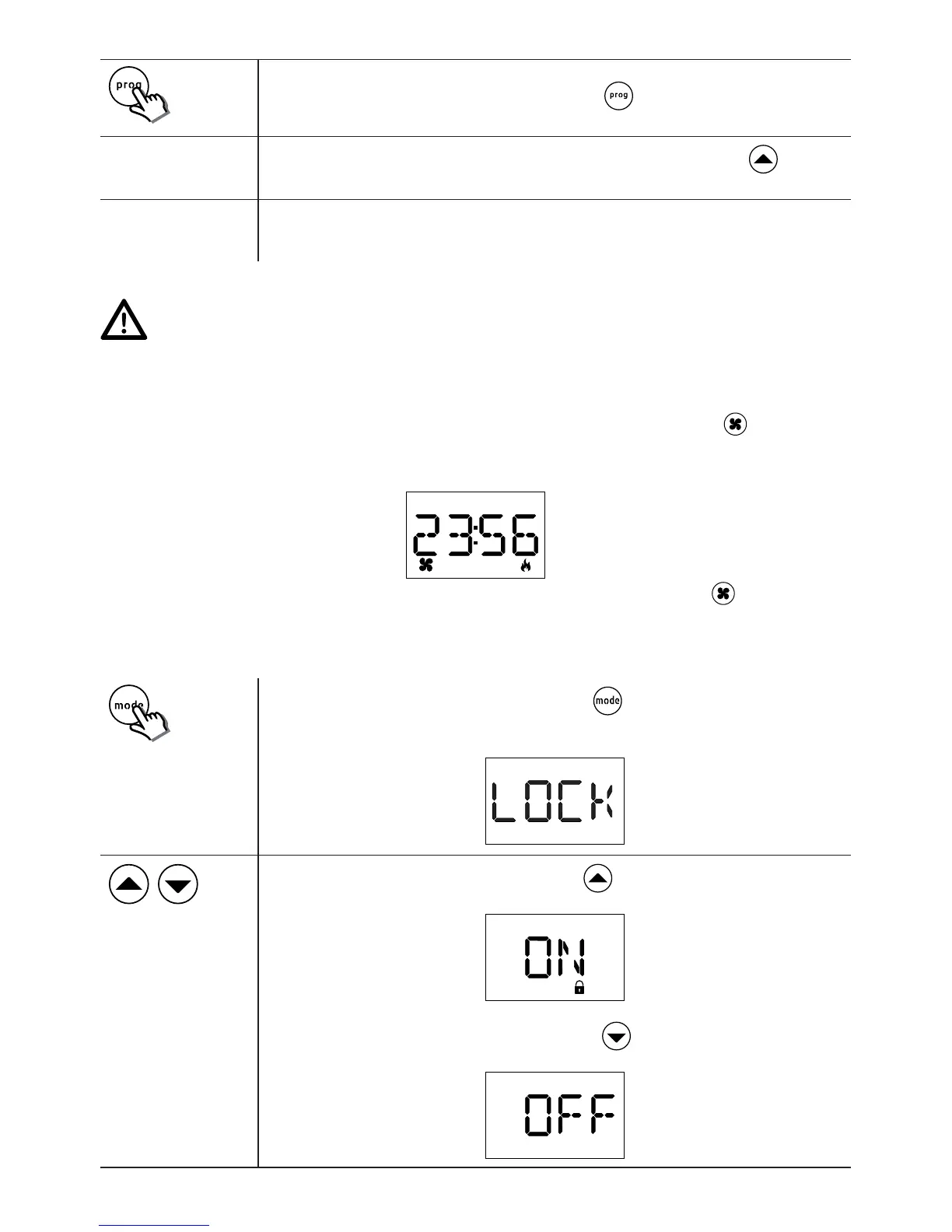dito dal pulsante no alla visualizzazione della scritta "LOCK"