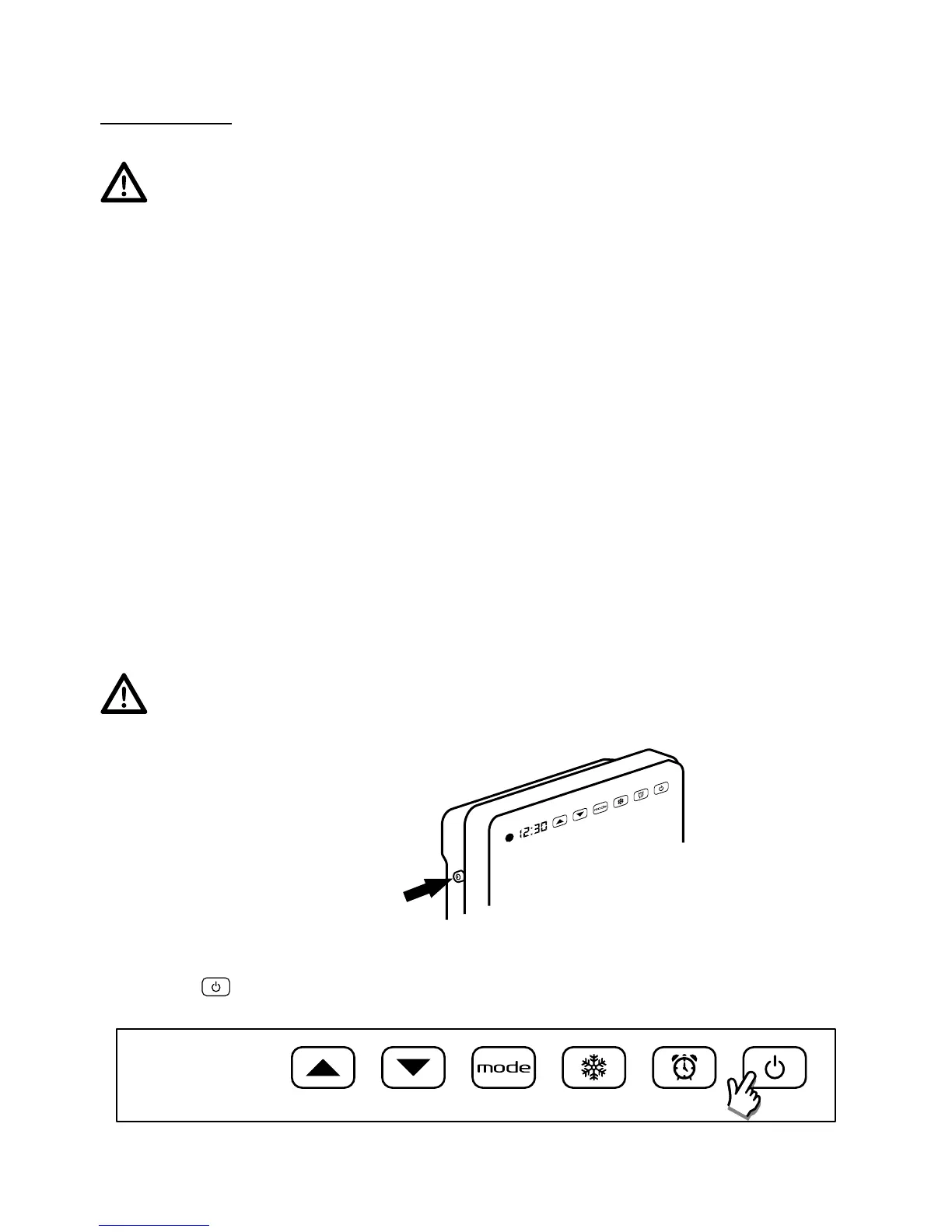 The power supply of the product is controlled by an electromechanical ON/OFF switch. Switching off the fan heater