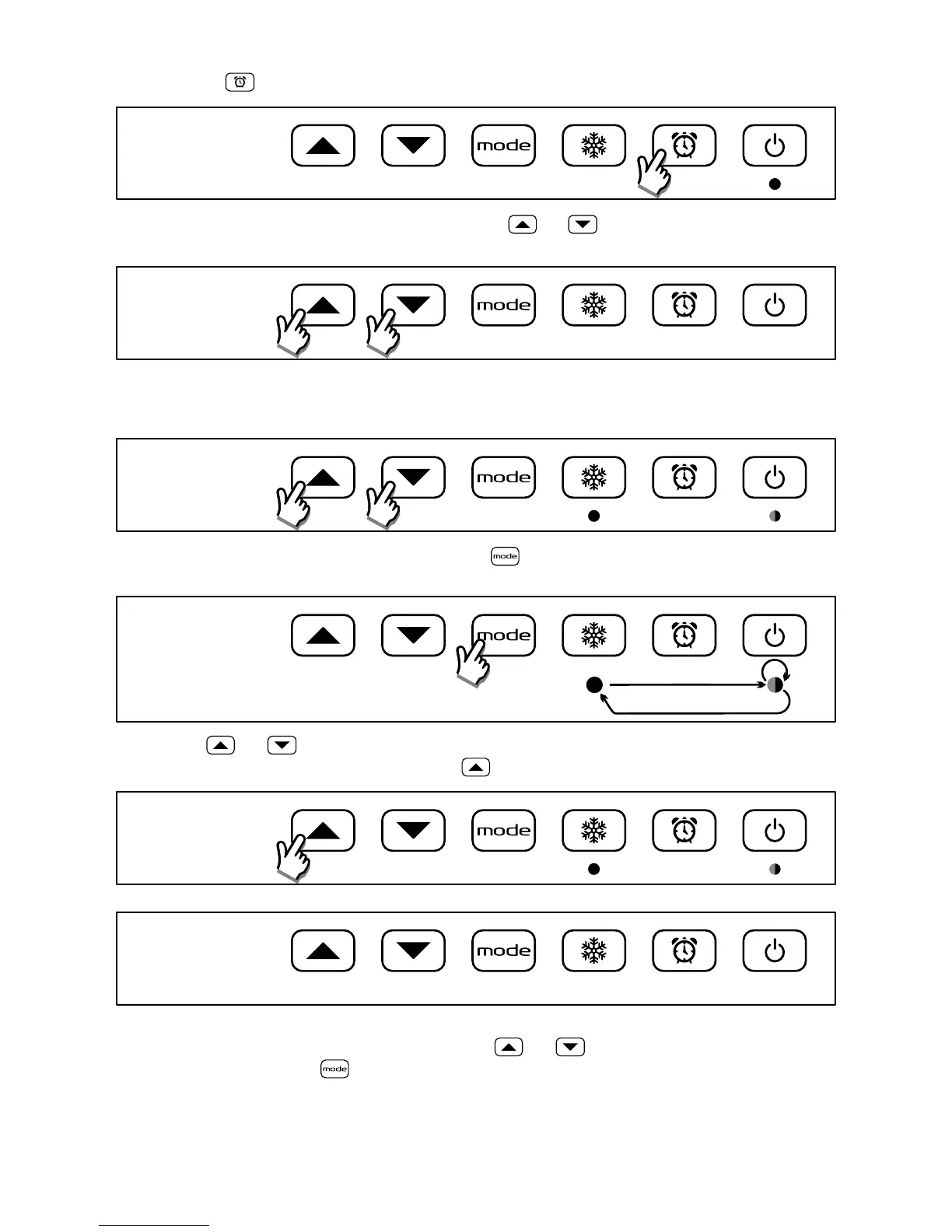 temperature (Comfort, Eco or Frost free) will light up in sequence to show the selected reference temperature: