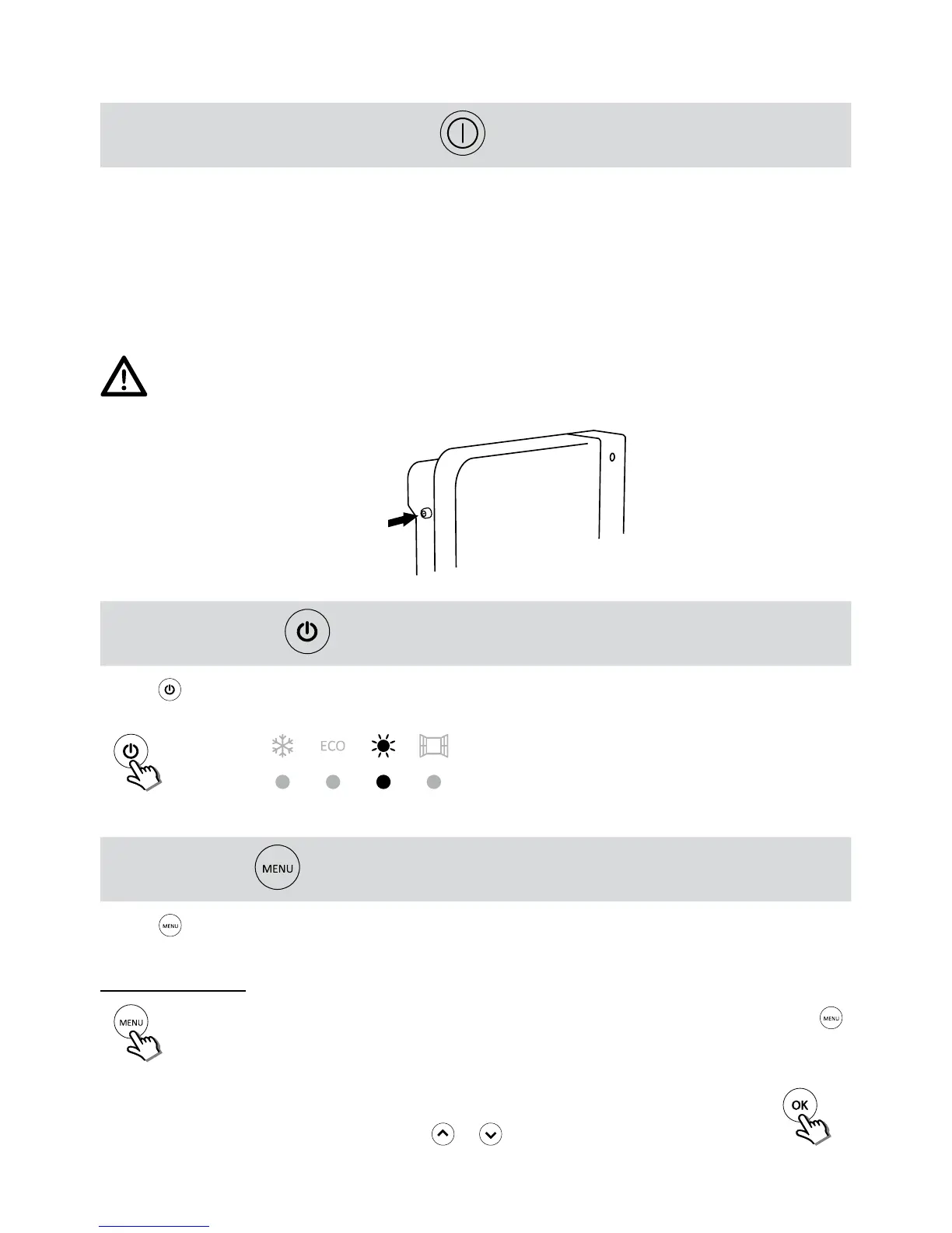 De voeding van het product wordt gecontroleerd door een elektromechanische aan/uit-knop.