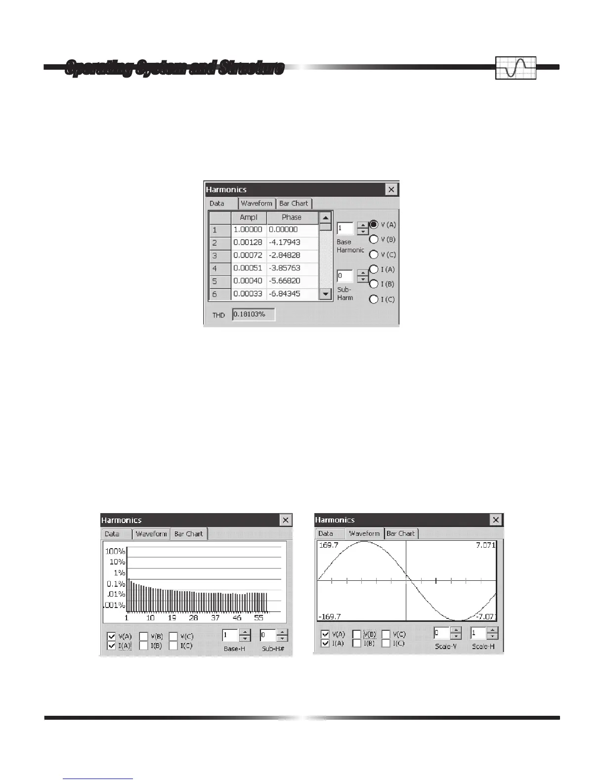 Voltage and current harmonics are viewable by their order, including amplitude and phase