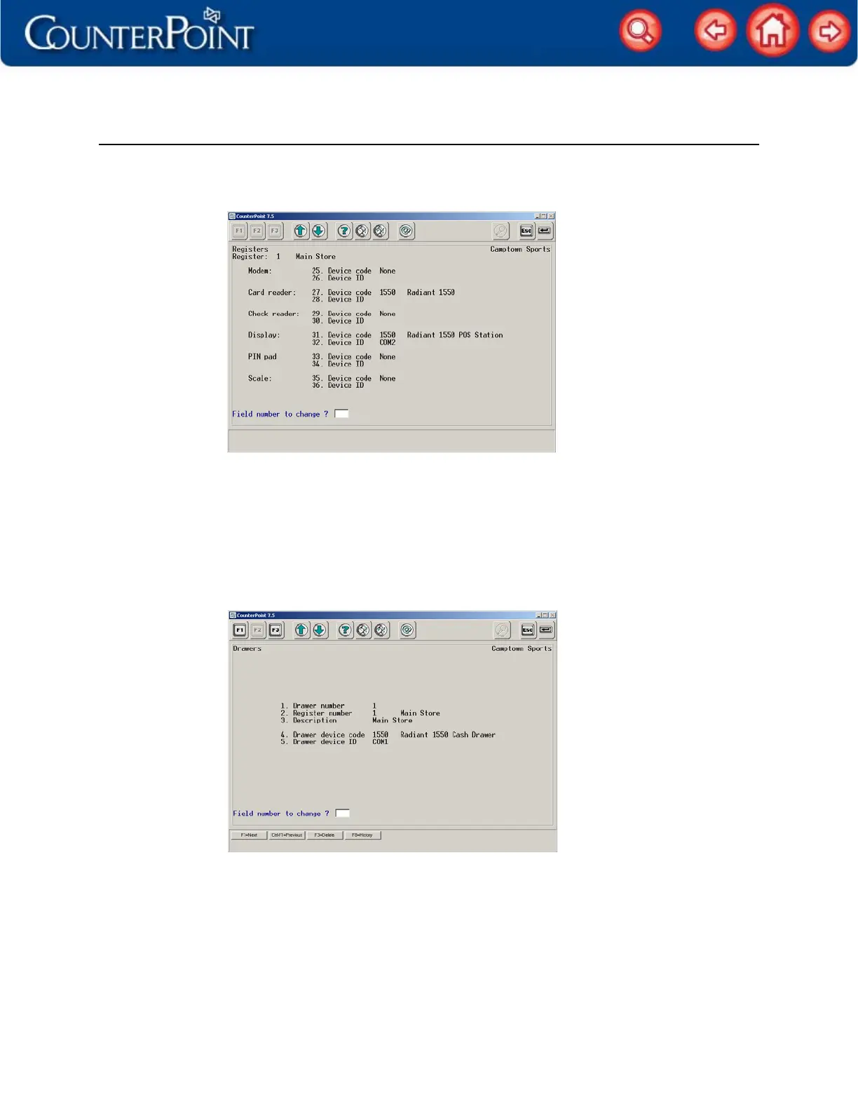 24. Select Setup / Point of Sale / Drawers, specify a Drawer number and Register number for the