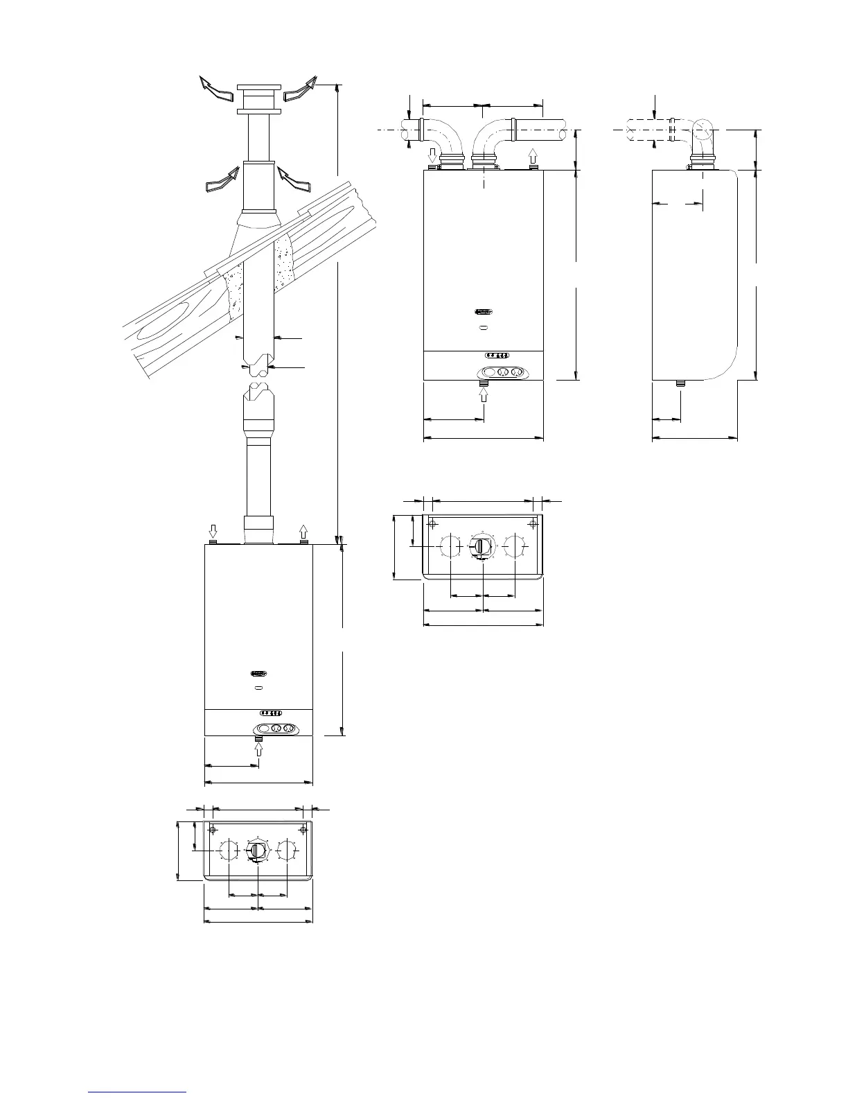 Double exhaust/intake flue system with 360° rotation.