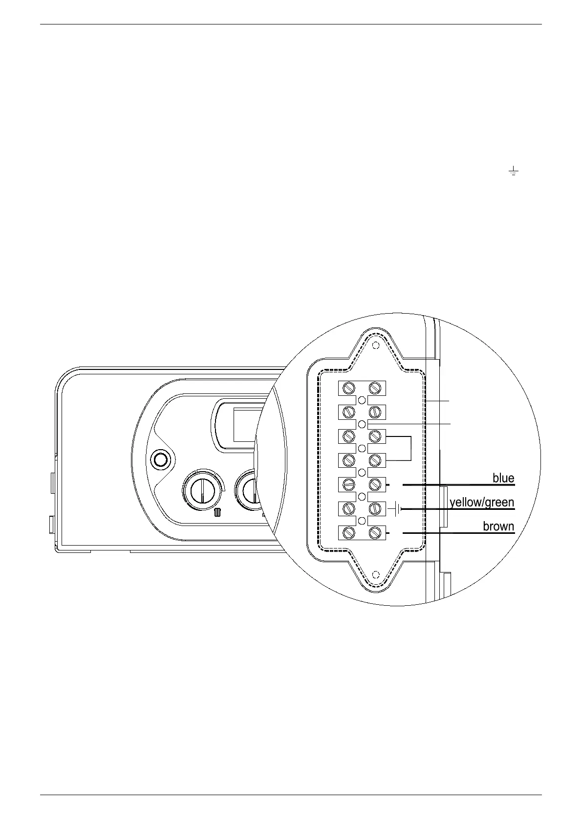 • Connect the earth wire (normally coloured green/yellow) to the terminal marked with the earth symbol “