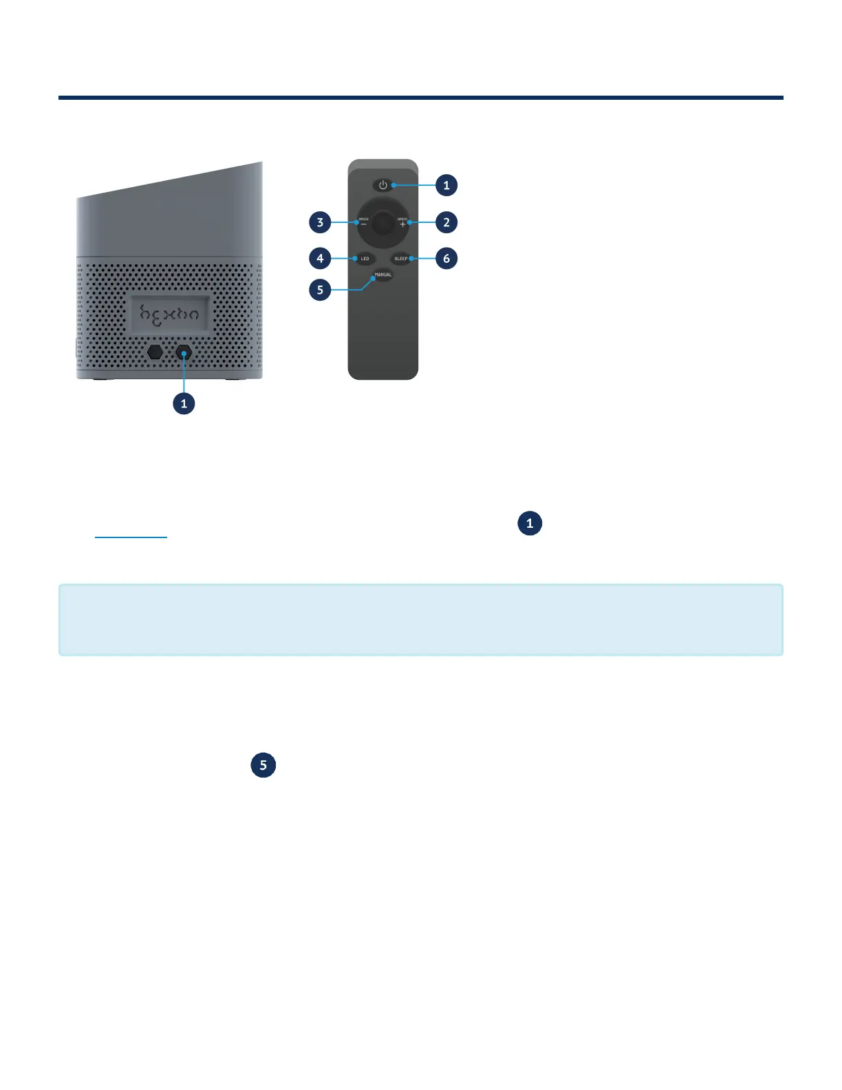 After installation, turn Hextio on or off by pressing the power button ( ) on the device or on the remote