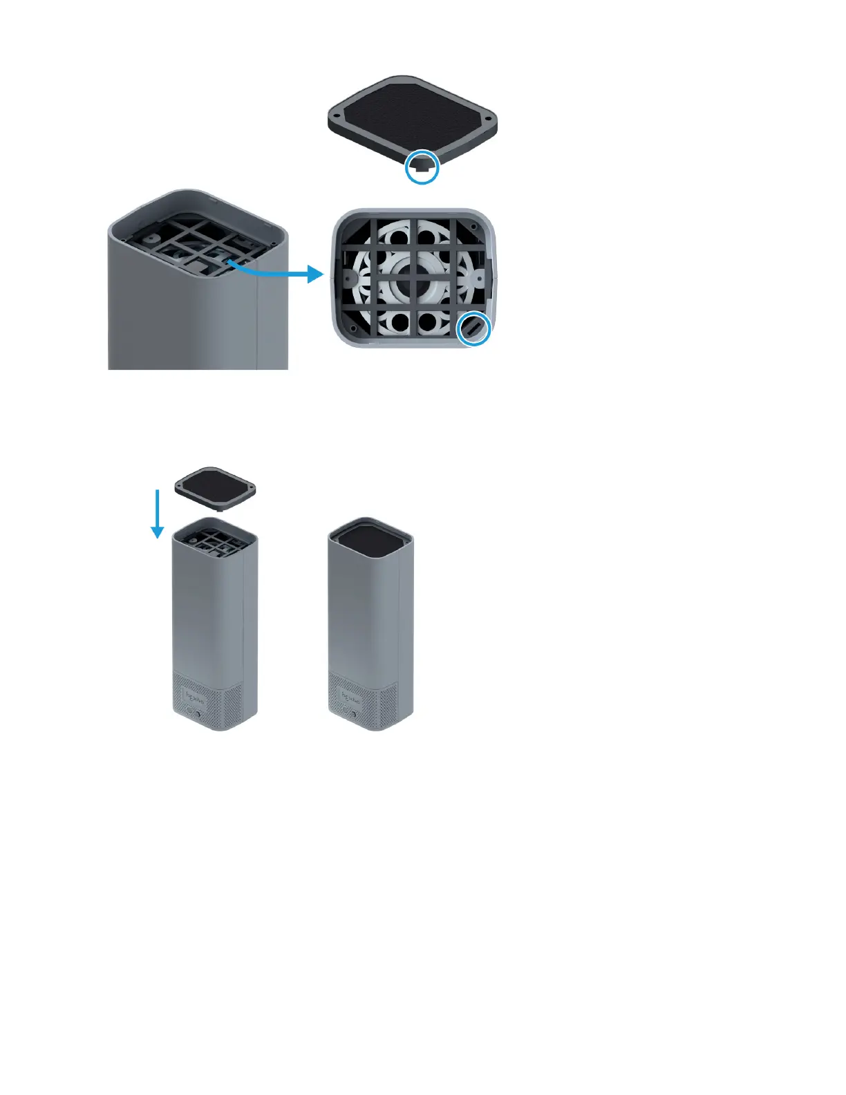 7. Replace the top filter grid and secure with both filter grid screws: