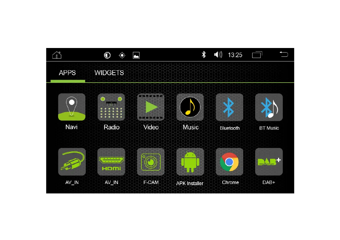The Apps menu interface shows the icons of the ex-works installed apps. Tap on these icons to open the respective
