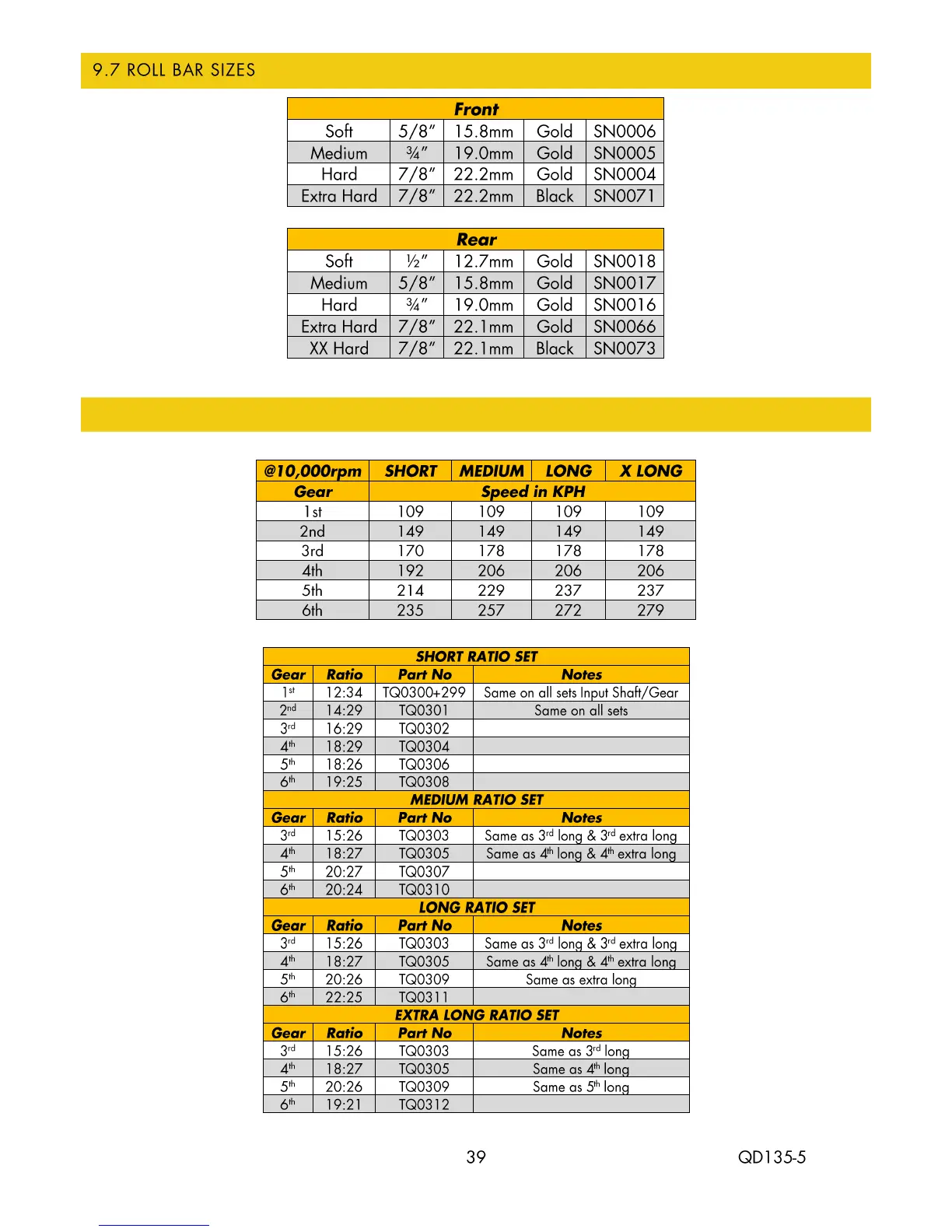 RADICAL SR8 - Torque Figures and Diagrams; Roll Bar Sizes; Gear Ratios