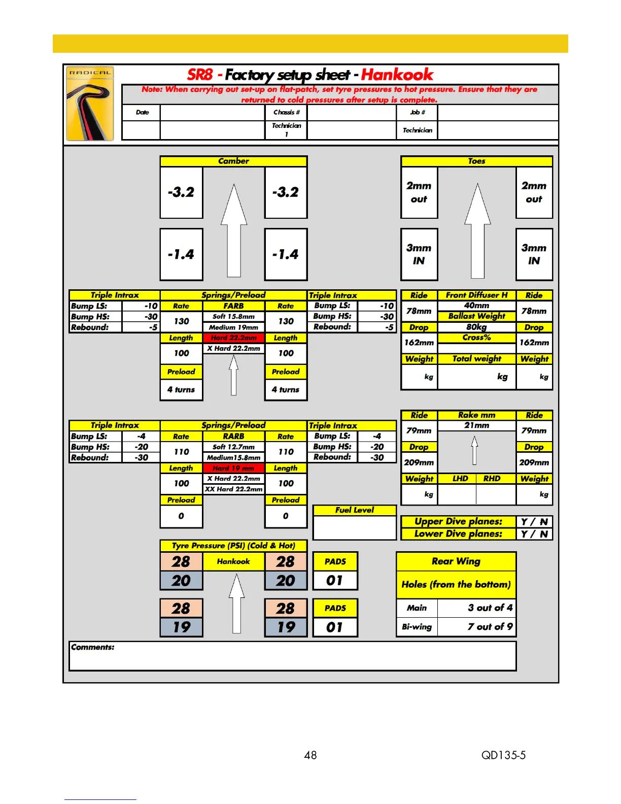 9.17 HANKOOK SETUP SHEET