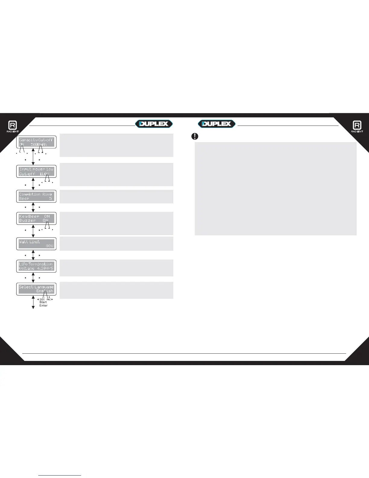 to power the Duplex charger. If the voltage falls below the