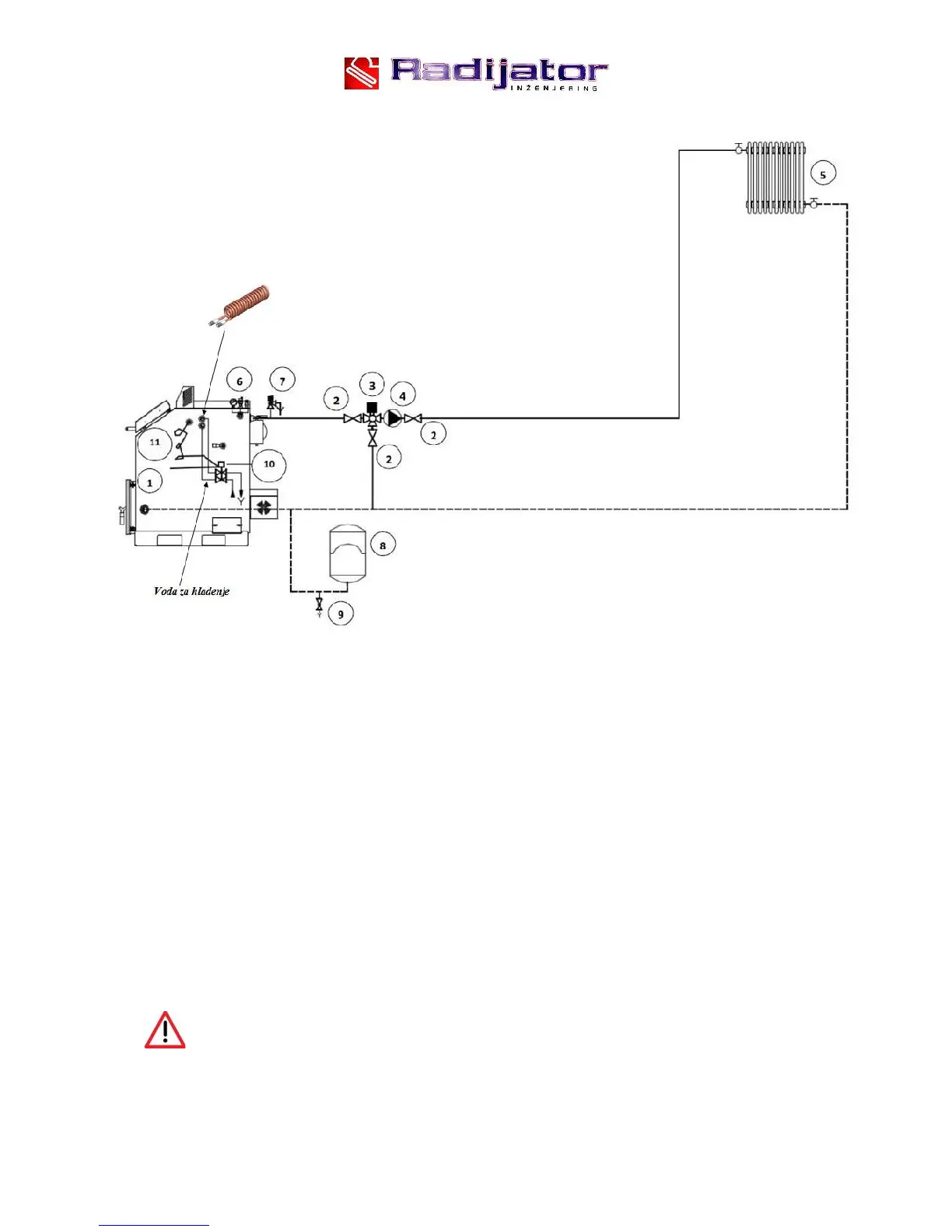 Prilikom montaže na hidrauličku instalaciju kotao mora biti obezbeđen