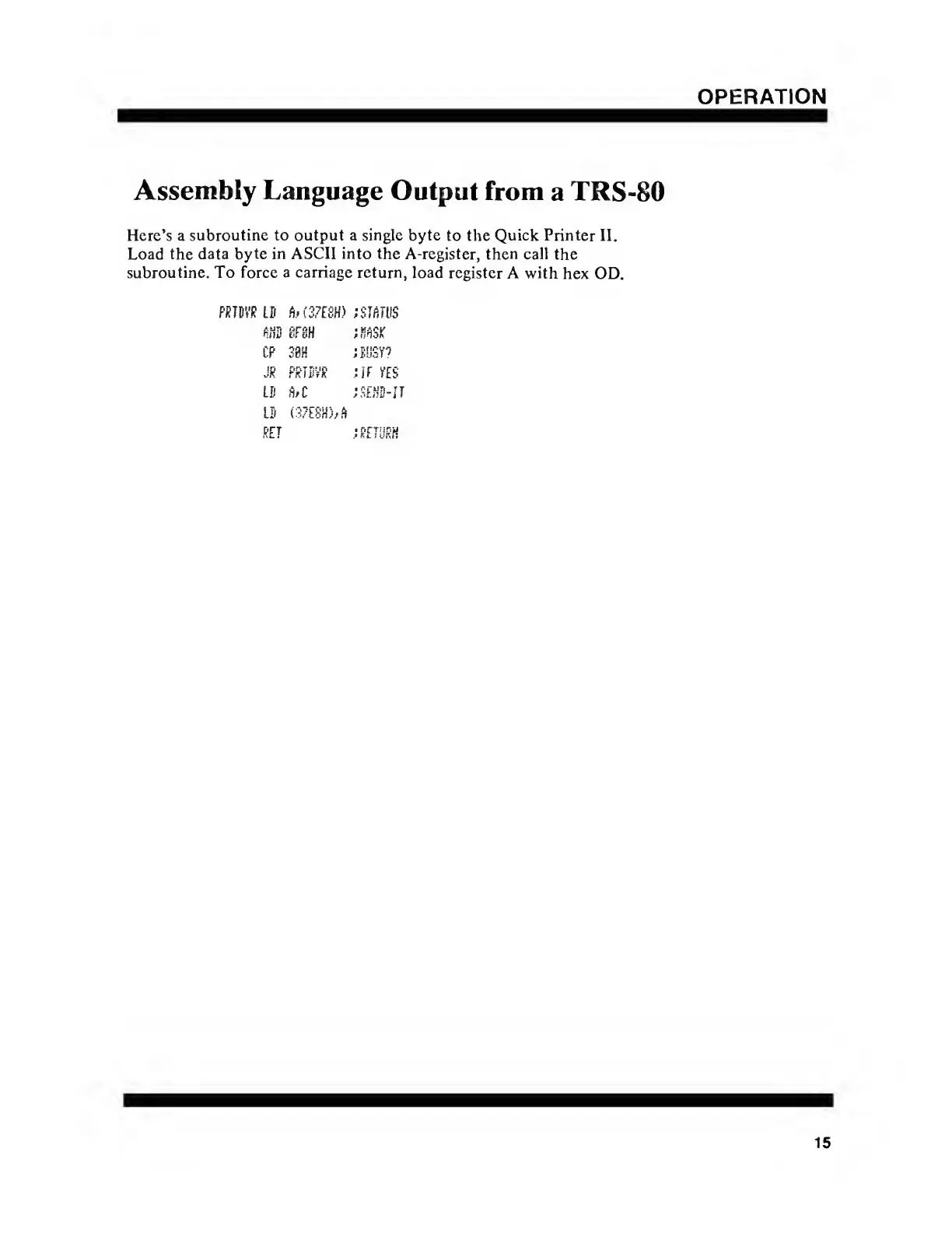 Radio Shack Quick Printer II - Assembly Language