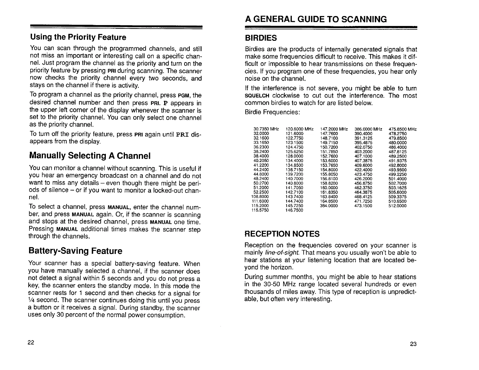 Radio Shack Realistic PRO-39 - Operational Modes and Guidance; Priority and Manual Operation; Battery-Saving Feature; Technical Notes
