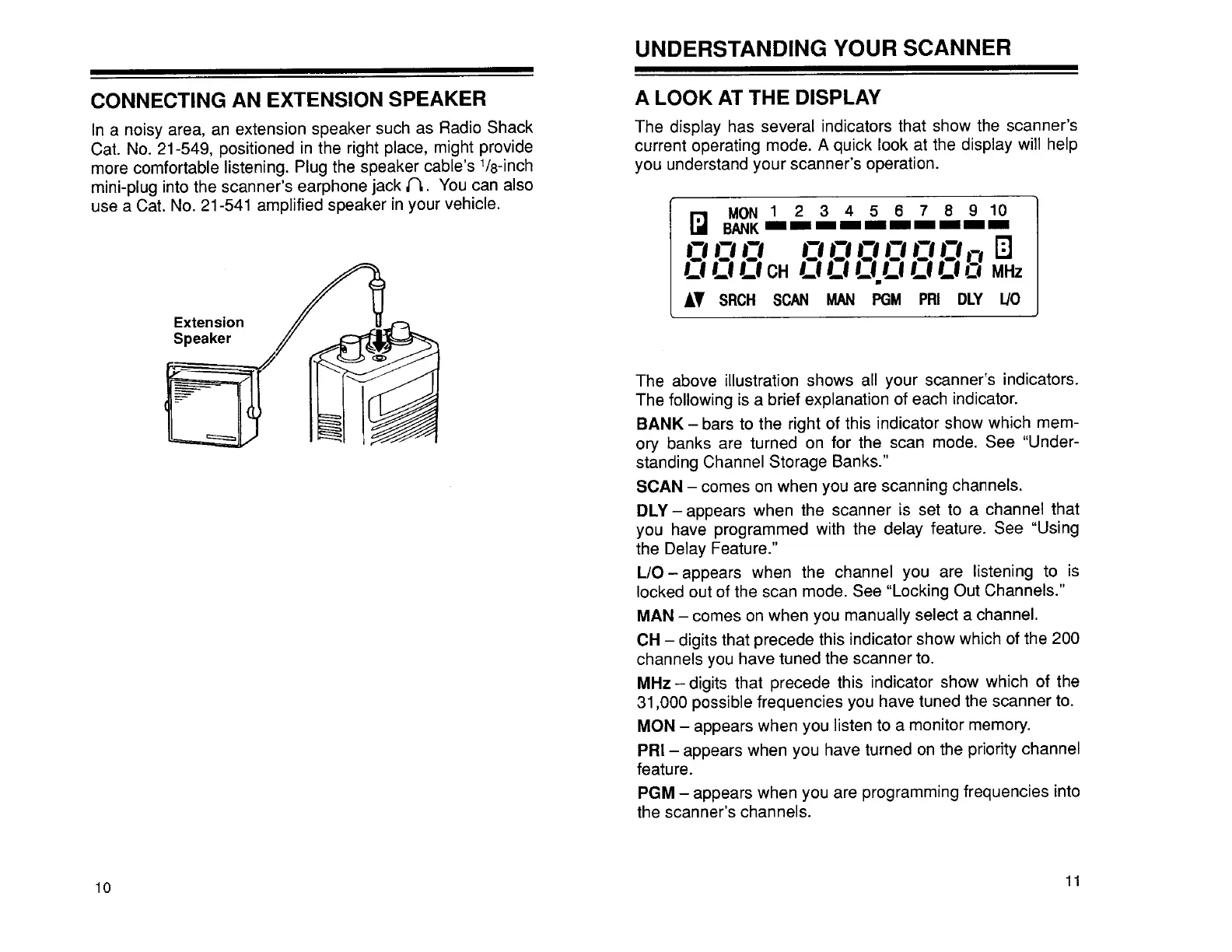 Radio Shack Realistic PRO-39 - Scanner Operation Basics; Connecting an Extension Speaker; Understanding the Display