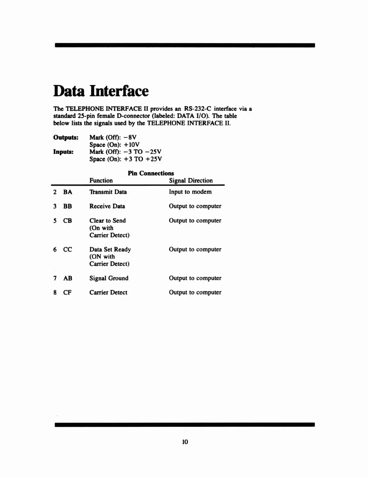 The TELEPHONE INTERFACE II provides an RS-232-C interface via a