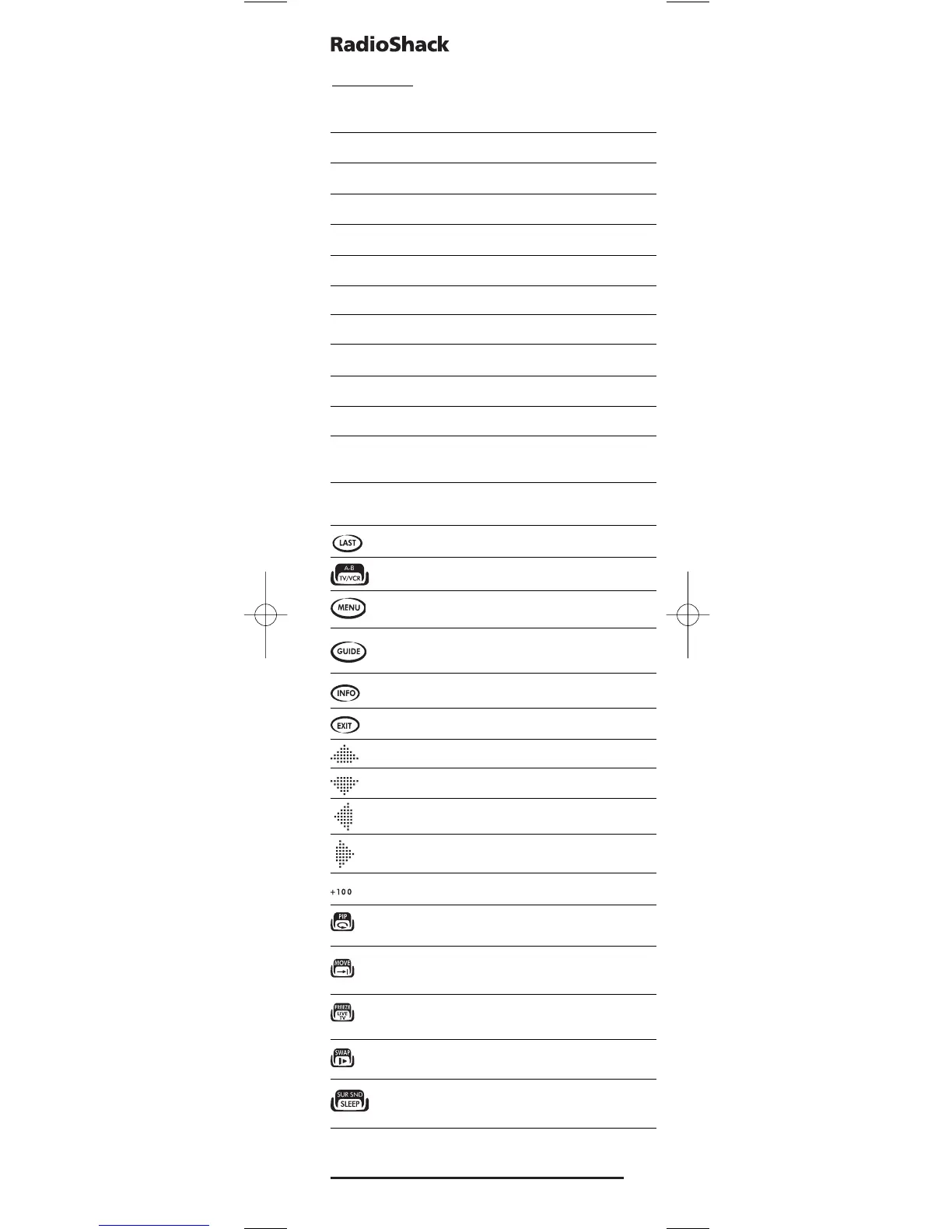 Radio Shack TOUCHSCREEN REMOTE - Key Table