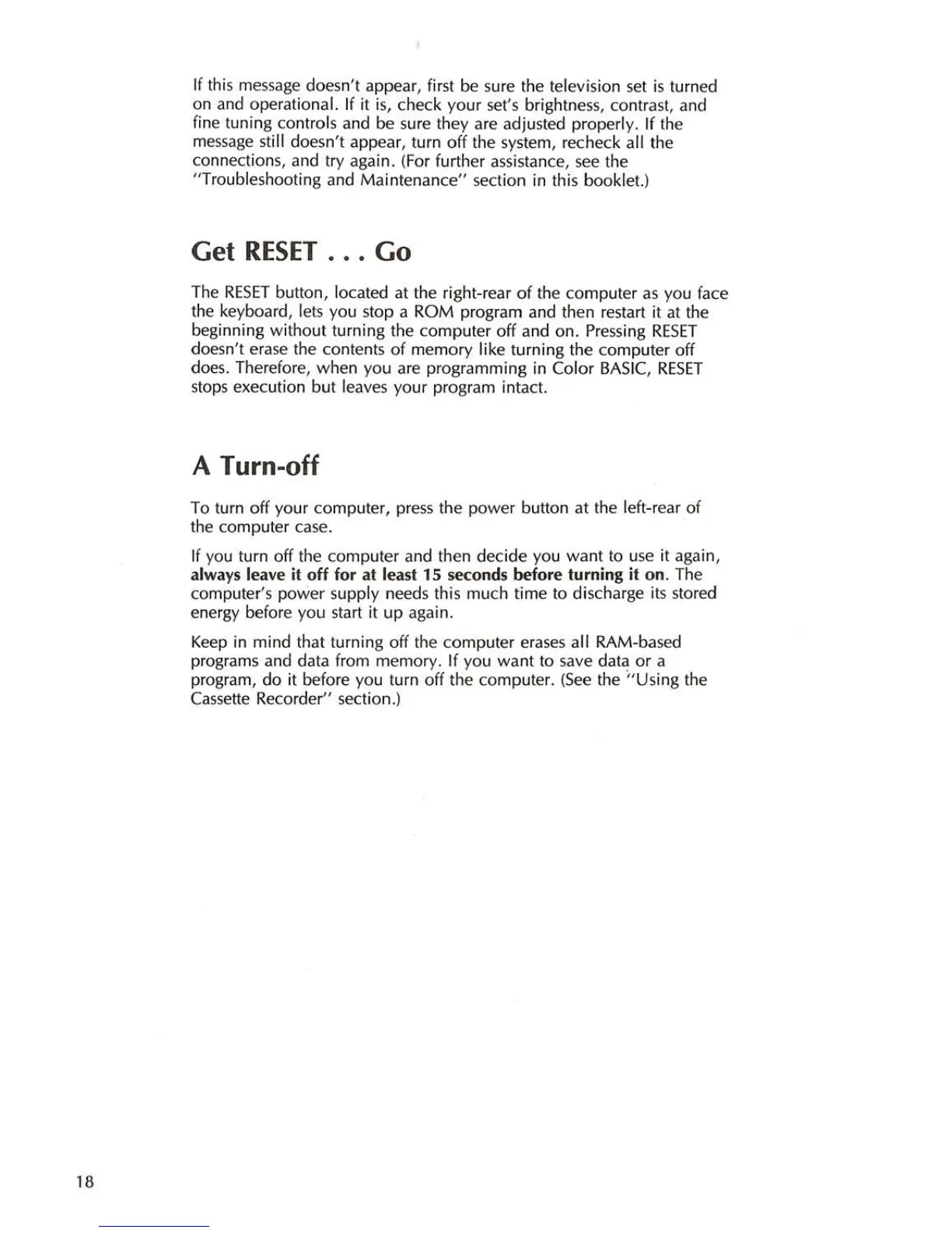 Radio Shack TRS-80 Color Computer 2 - Get RESET... Go; A Turn-off