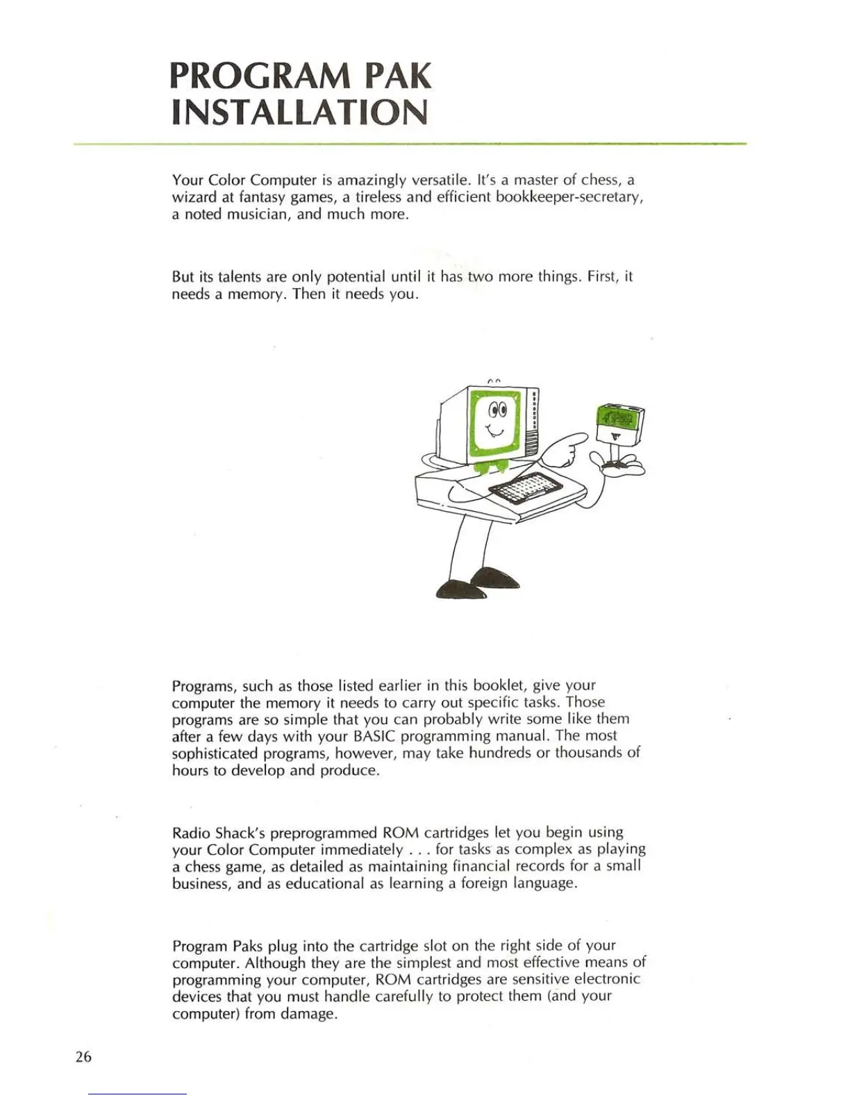 Radio Shack TRS-80 Color Computer 2 - PROGRAM PAK INSTALLATION
