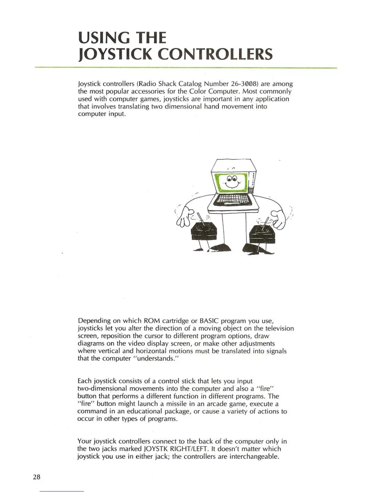 Radio Shack TRS-80 Color Computer 2 - USING THE JOYSTICK CONTROLLERS