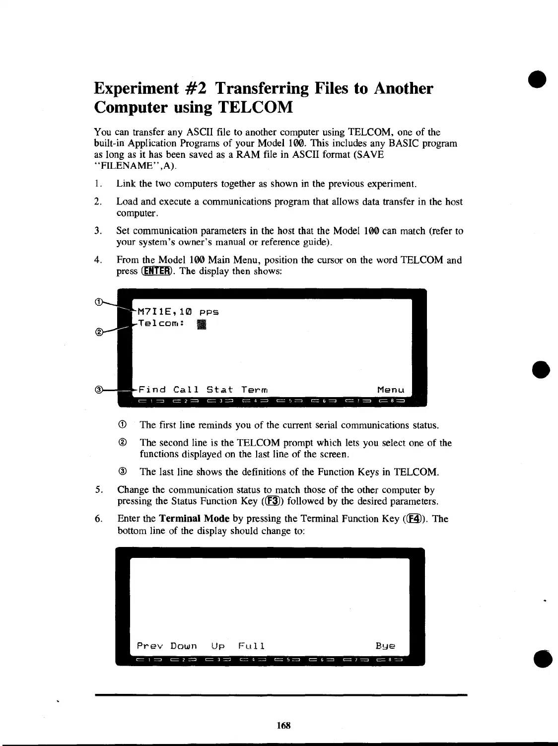From the Model 100 Main Menu, position the cursor on the word TELCOM and