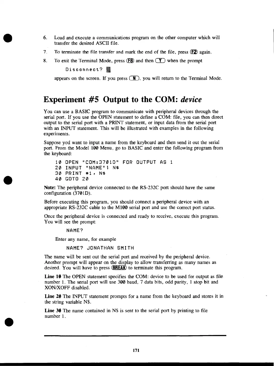 Suppose you want to input a name from the keyboard and then send it out the serial