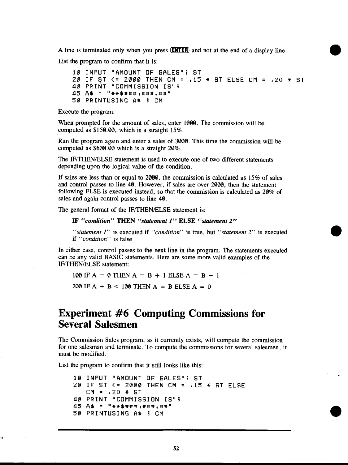 for one salesman and terminate. To compute the commissions for several salesmen, it