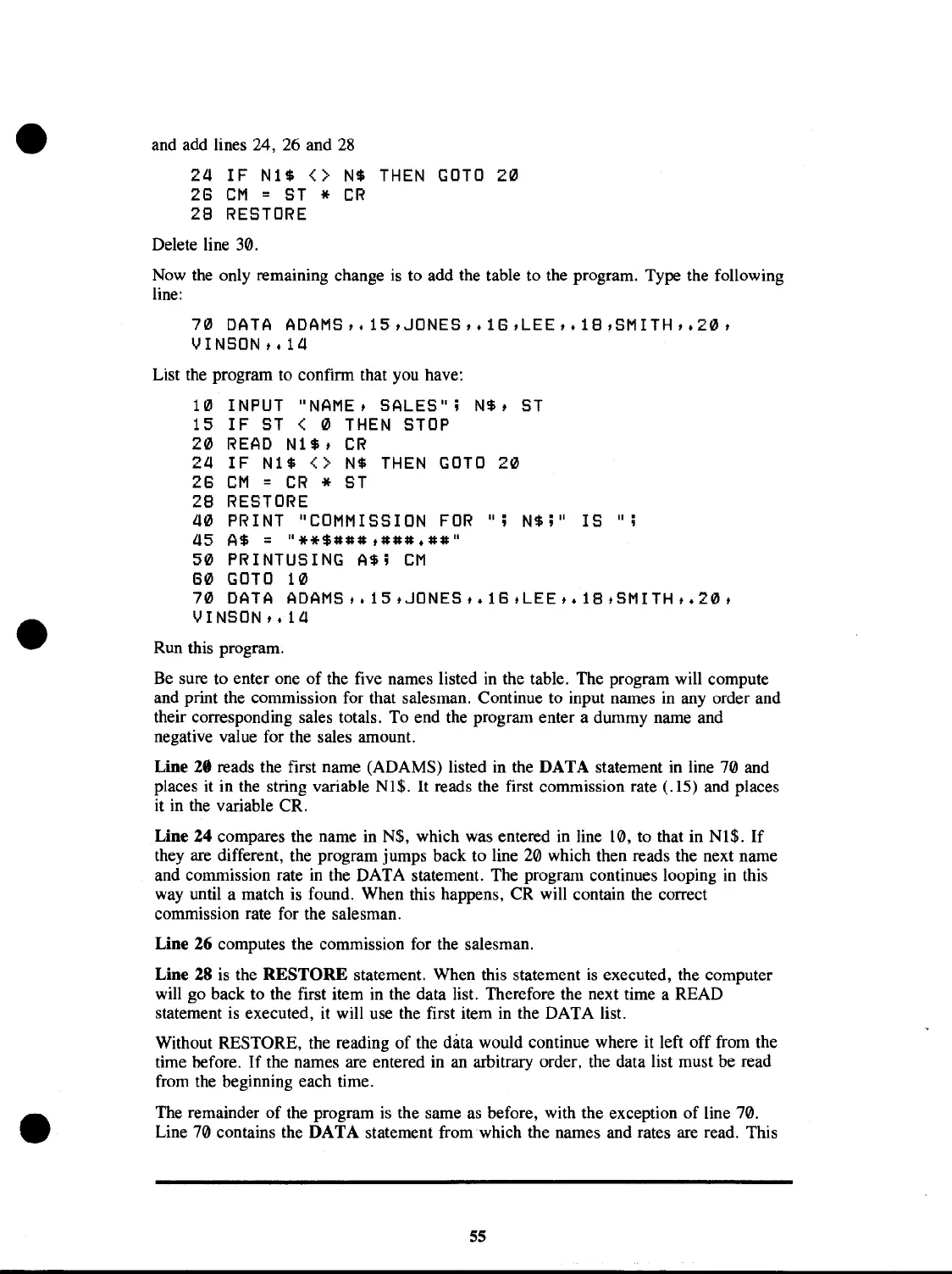 Line 70 contains the DATA statement from which the names and rates are read. This