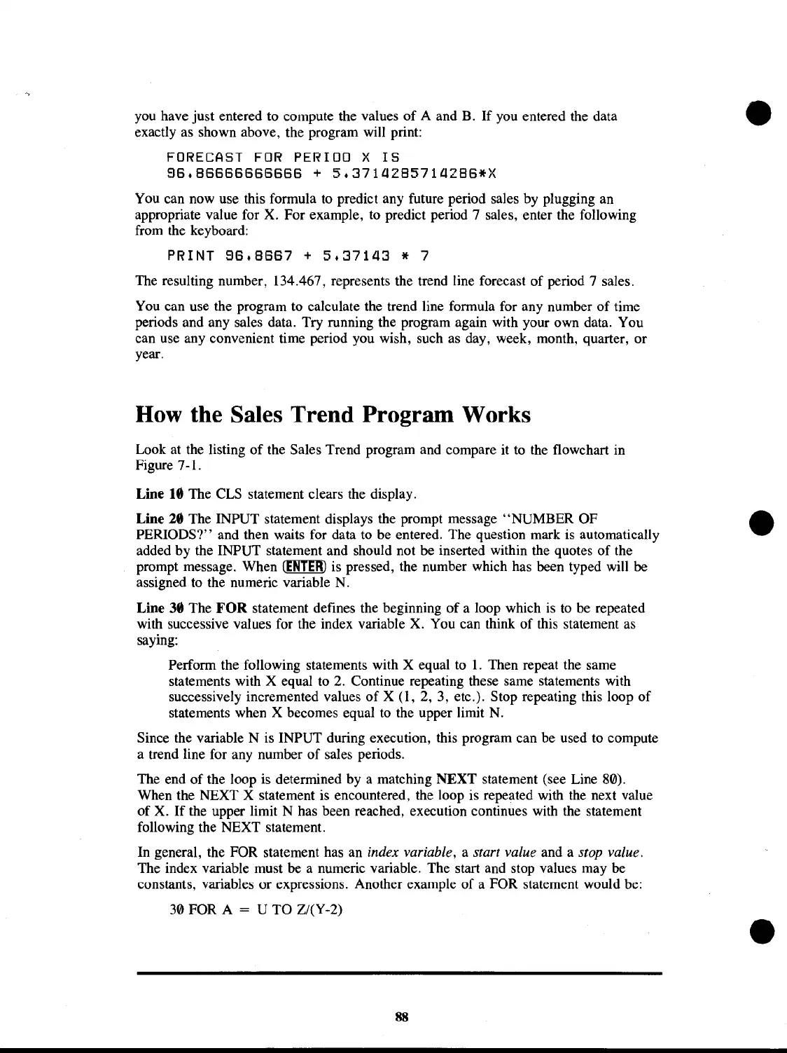 appropriate value for X. For example, to predict period 7 sales, enter the following