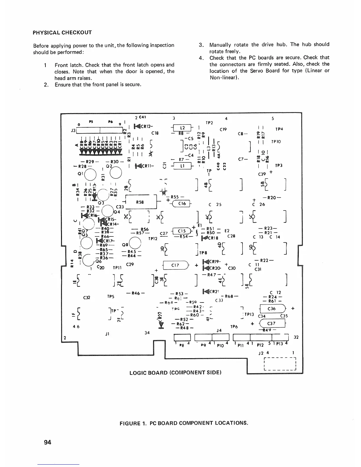 Radio Shack TRS-80 Model III - Physical Checkout; PC Board Component Locations; Logic Board (Component Side)