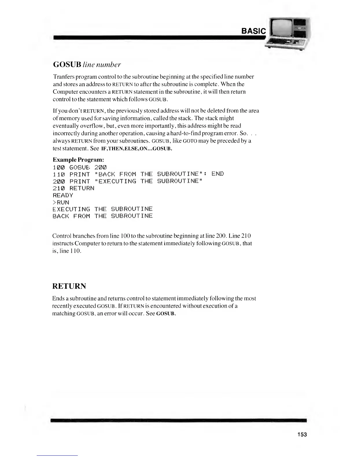 from your subroutines. GOSUB , like GOTO may be