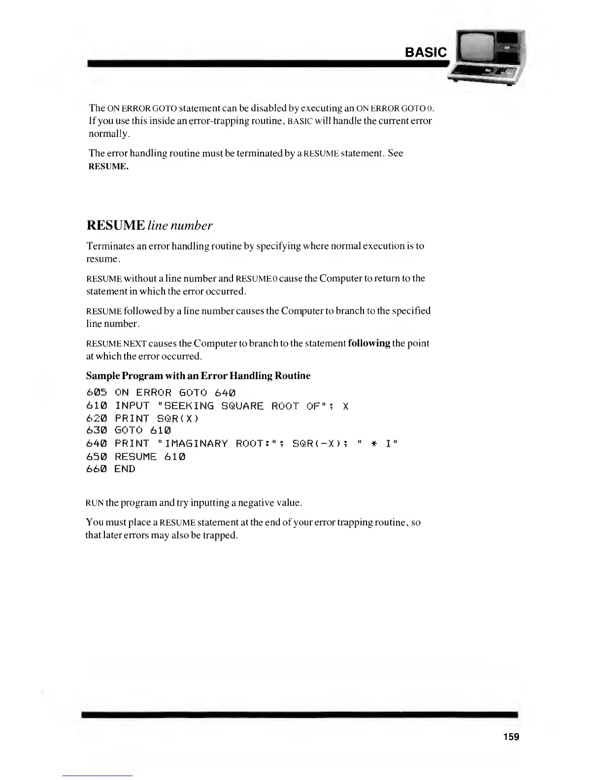 RESUME without a line number and RESUME cause the