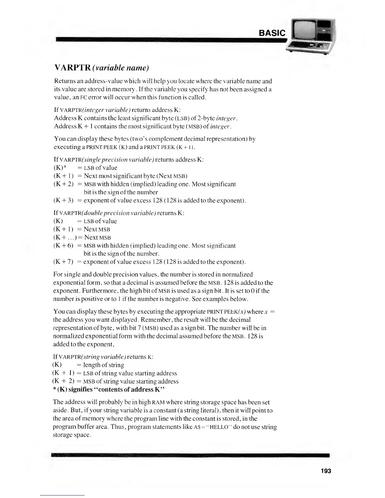 VARPTR (variable