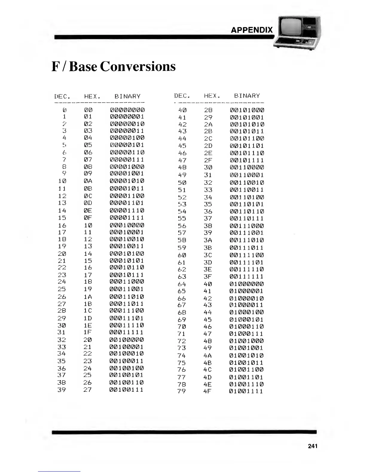 DEC. HEX. BINARY