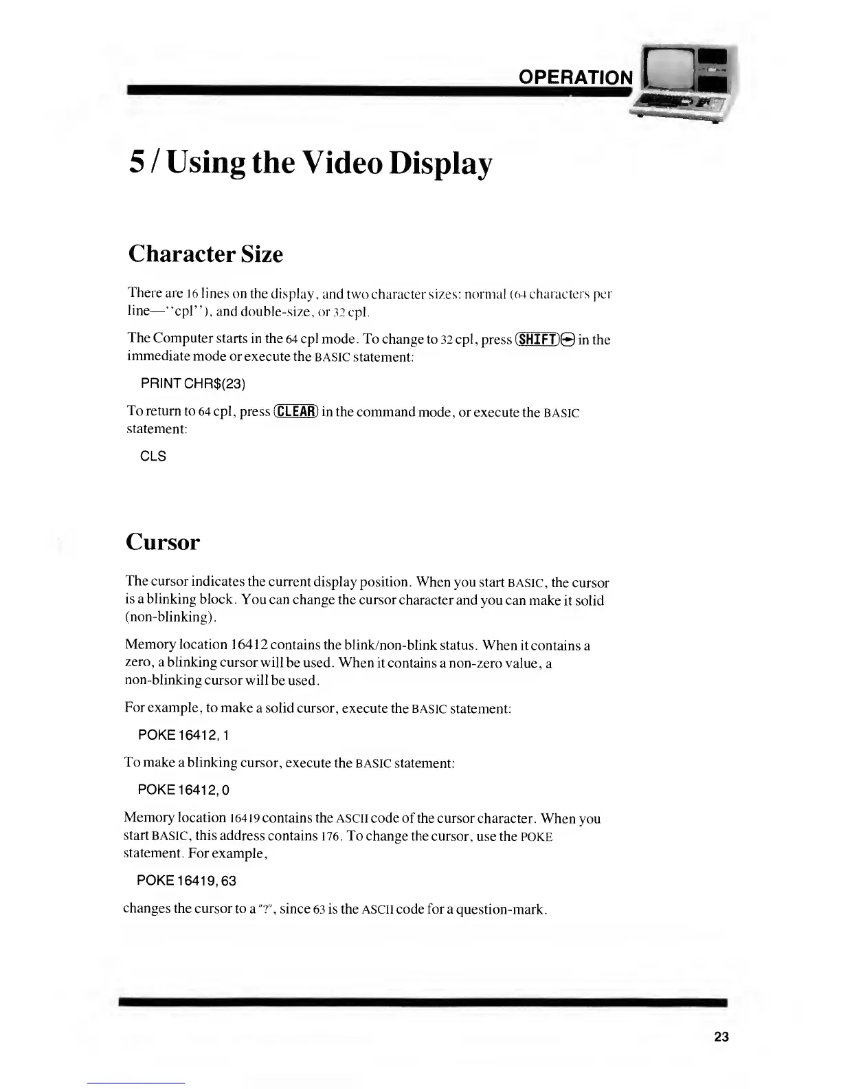 Radio Shack TRS-80 Model III - Video Display Usage