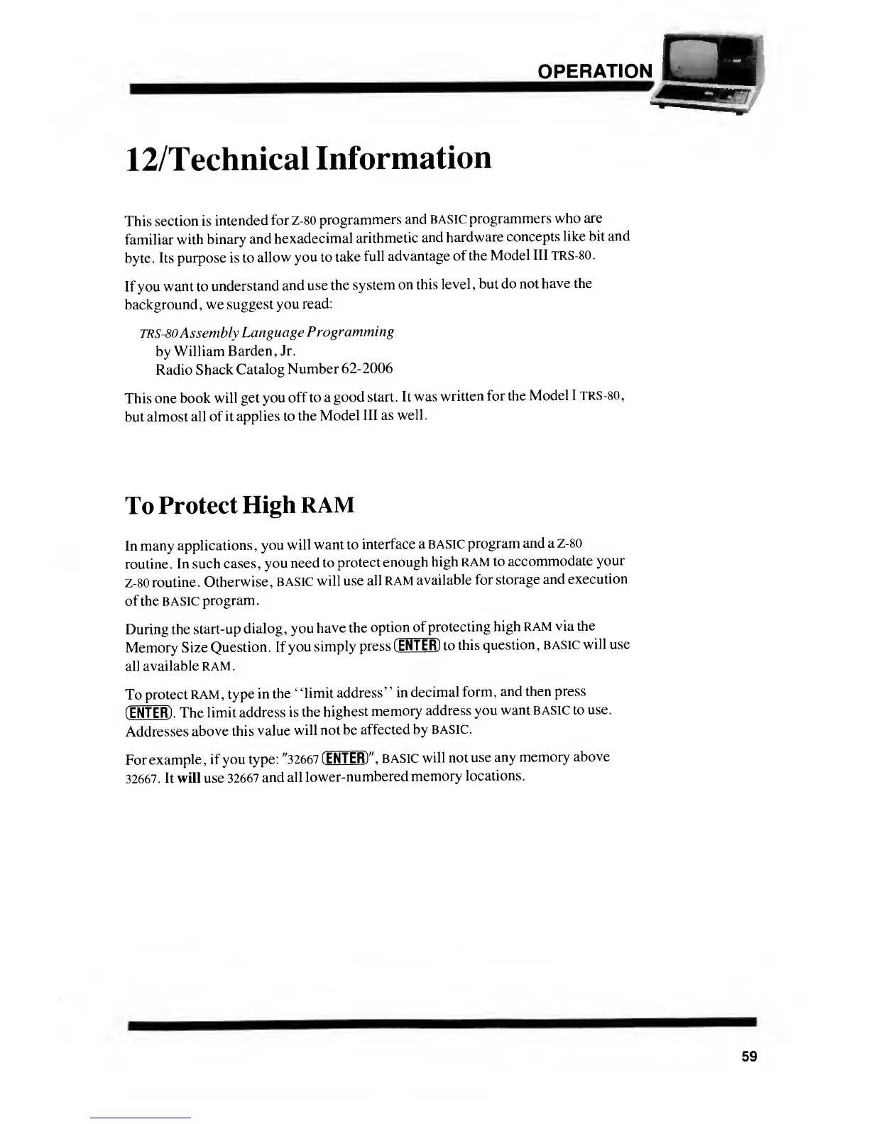 Radio Shack TRS-80 Model III - Technical Information; To Protect High RAM
