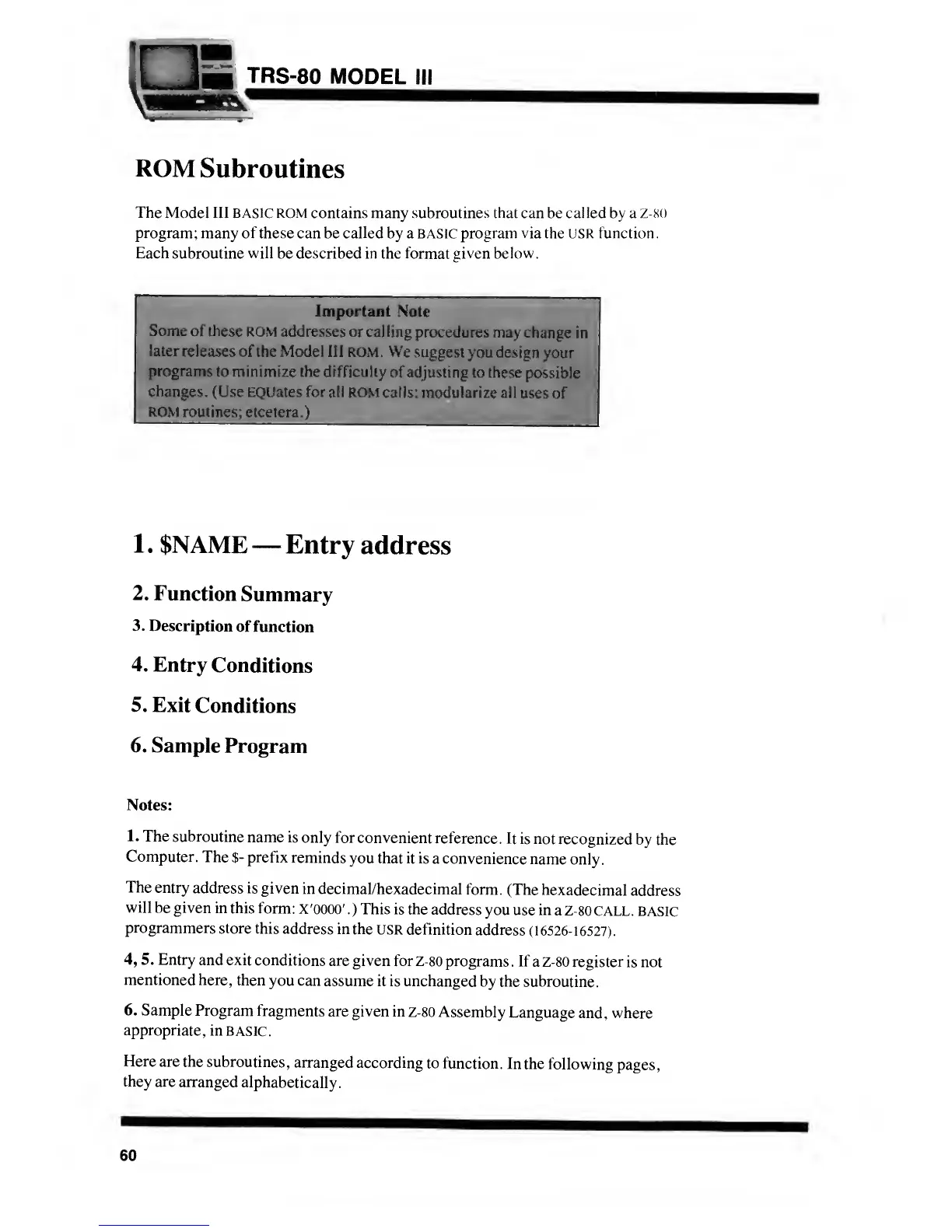 Radio Shack TRS-80 Model III - ROM Subroutines