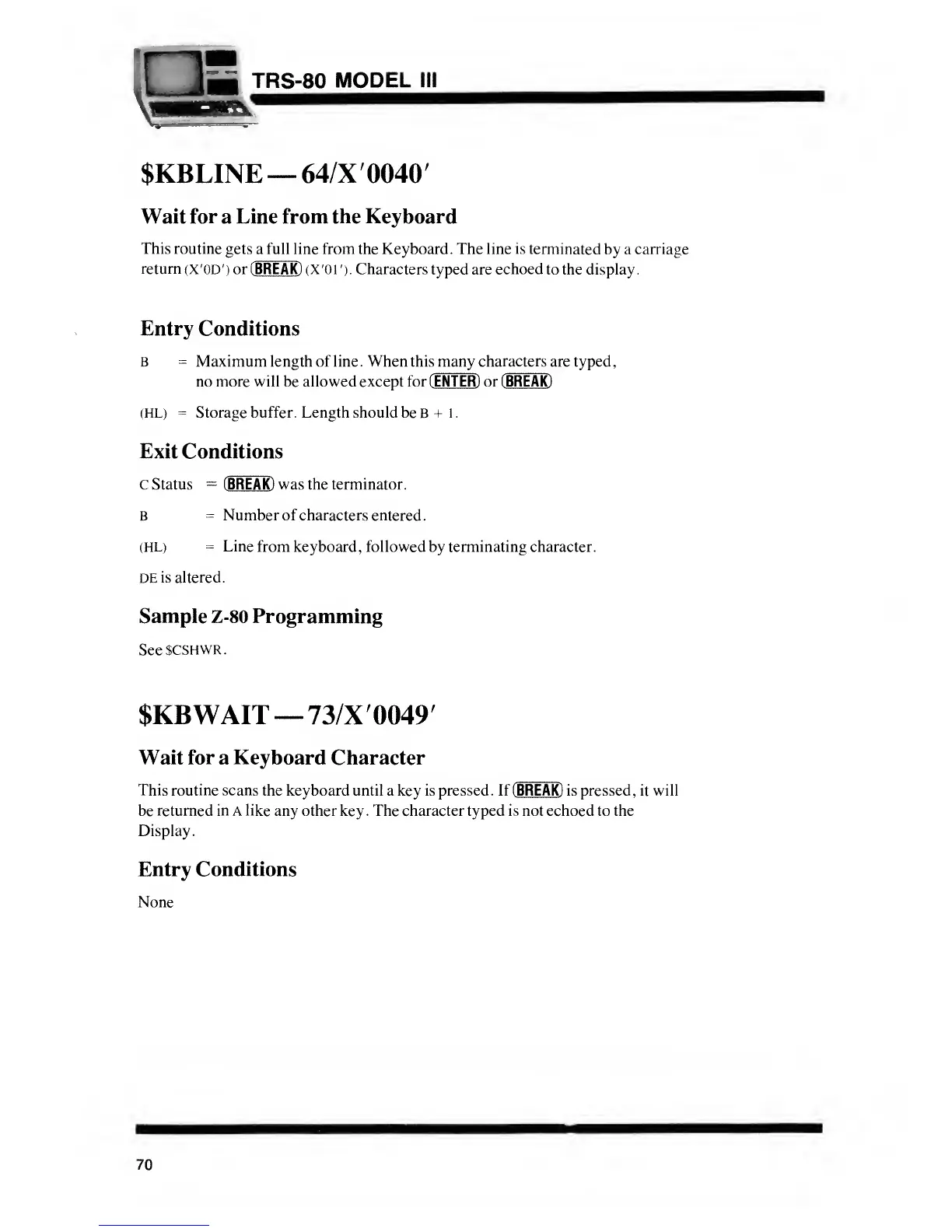 the keyboard until a key is pressed. If (BREAK) is pressed, it wil