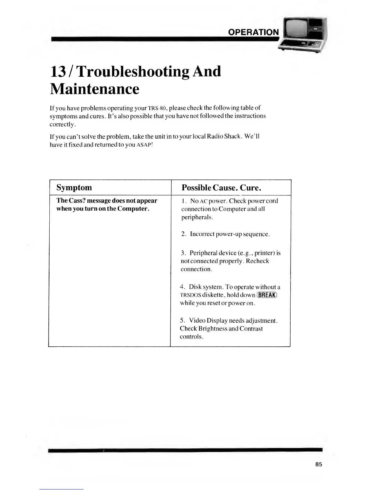 Radio Shack TRS-80 Model III - Troubleshooting and Maintenance; AC Power Sources