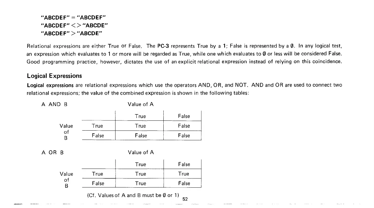 relational expressions; the value of the combined expression